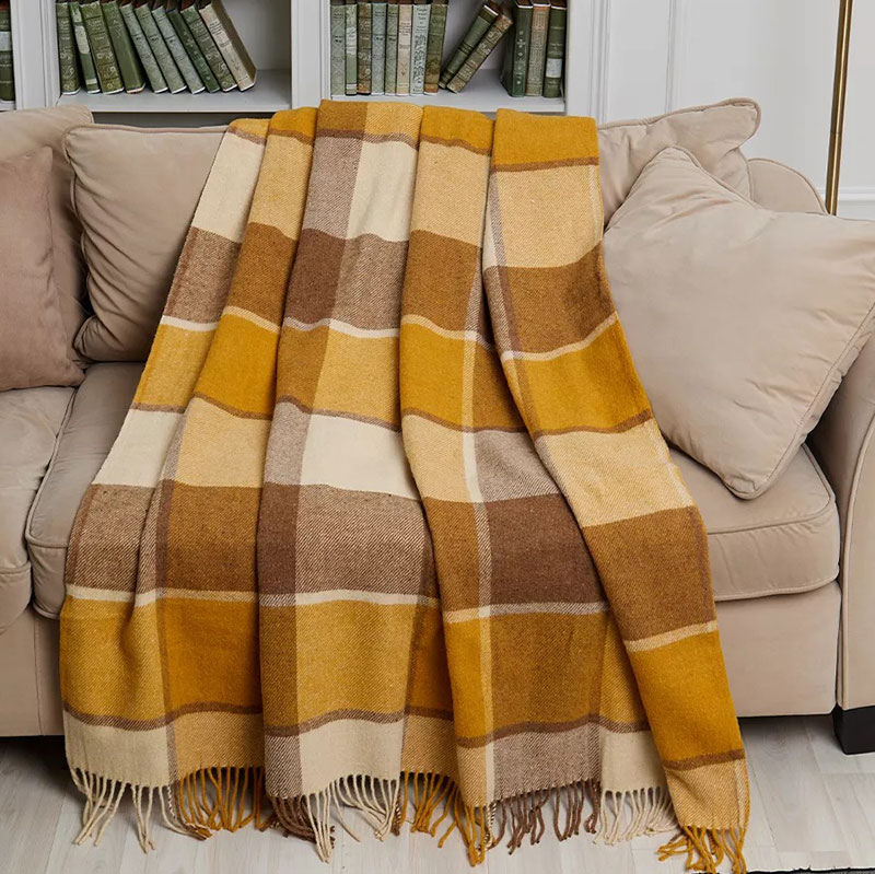 Плед "Vladi" шерстяной "Осло" бело-коричнево-горчичный вид 1