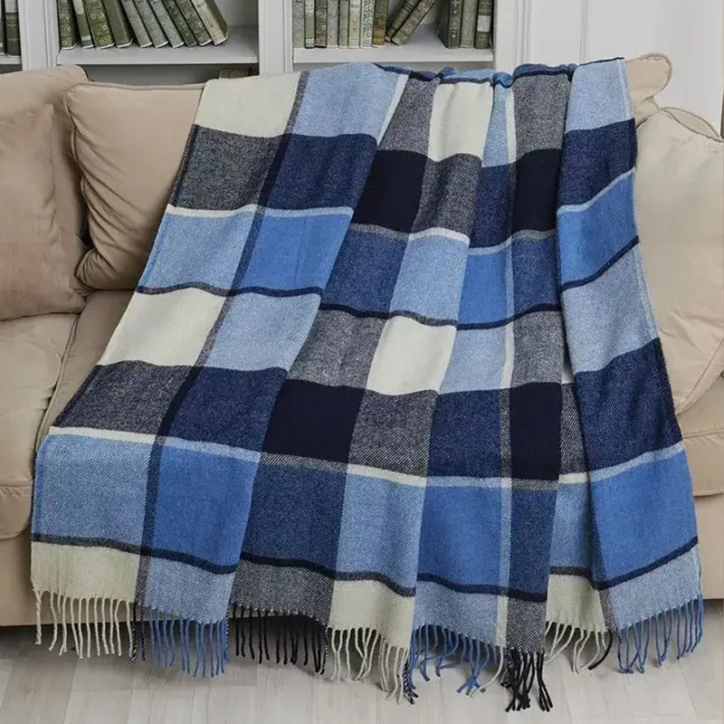 Плед "Vladi" шерстяной "Осло" бело-серый с голубым и темно-синим
