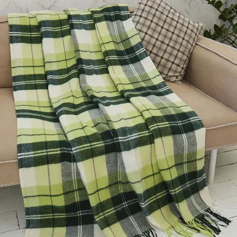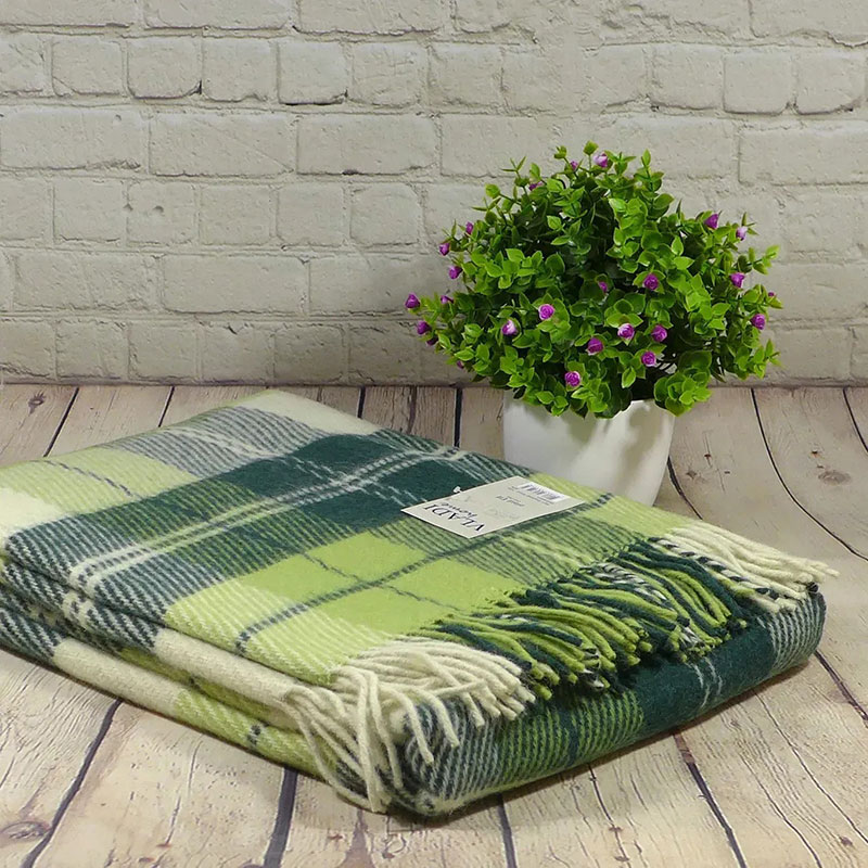 Плед "Vladi" шерстяной "Эльф" 02/NOAH бело-салатовый с темно-зеленым