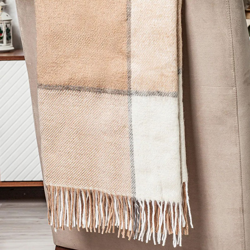 Плед "Vladi" шерстяной "Эльф" 04/OLIVER бело-бежевый с серым