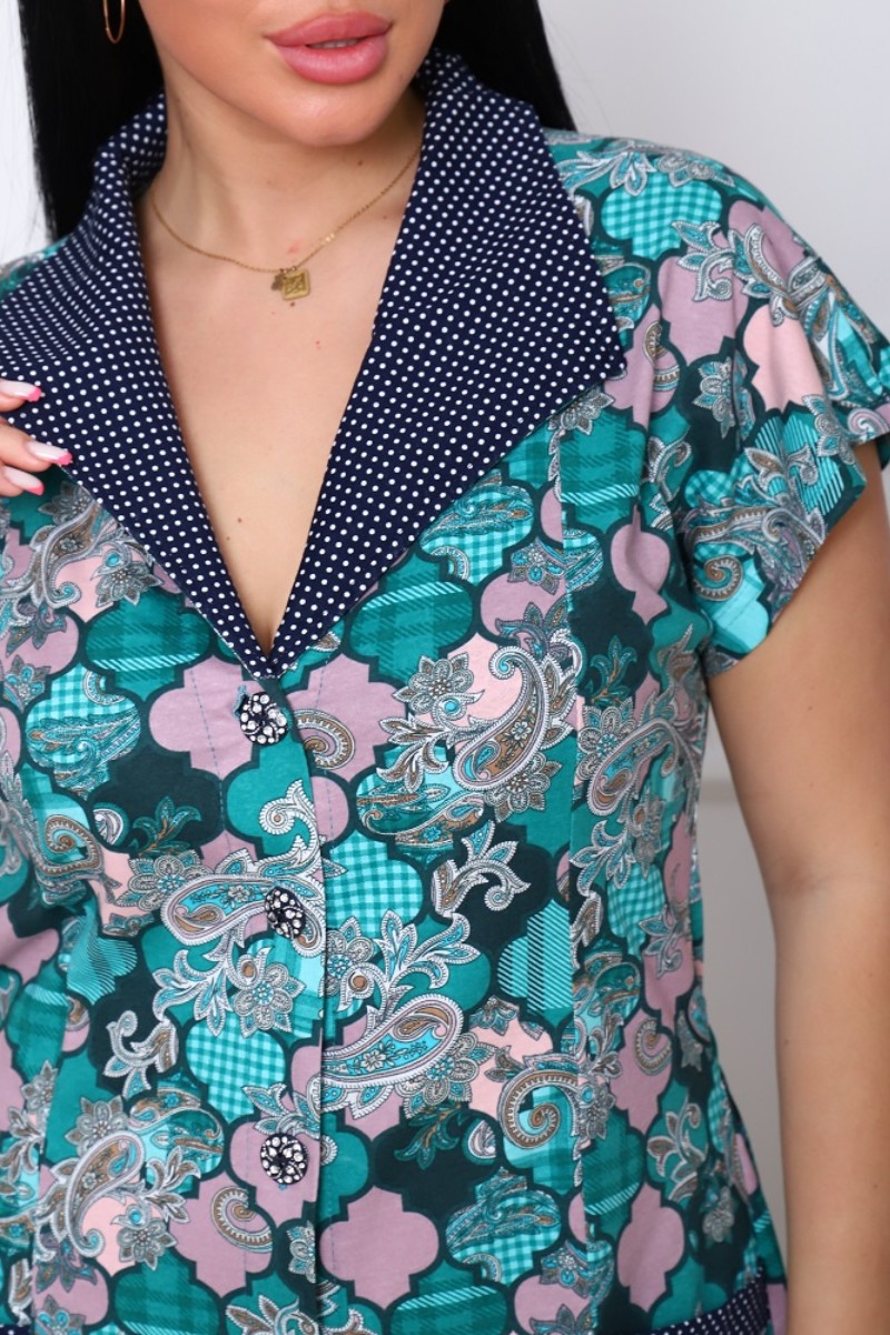 Халат женский 029 кулирка (последний размер) темно-зеленый-розовый-огурцы 50-52
