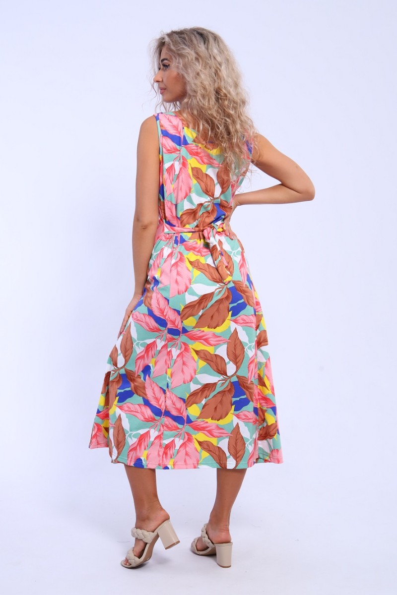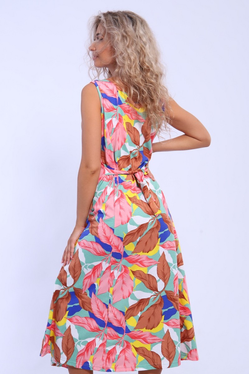 Сарафан женский 576 кулирка (последний размер) зеленый-желтый-листья 54-56