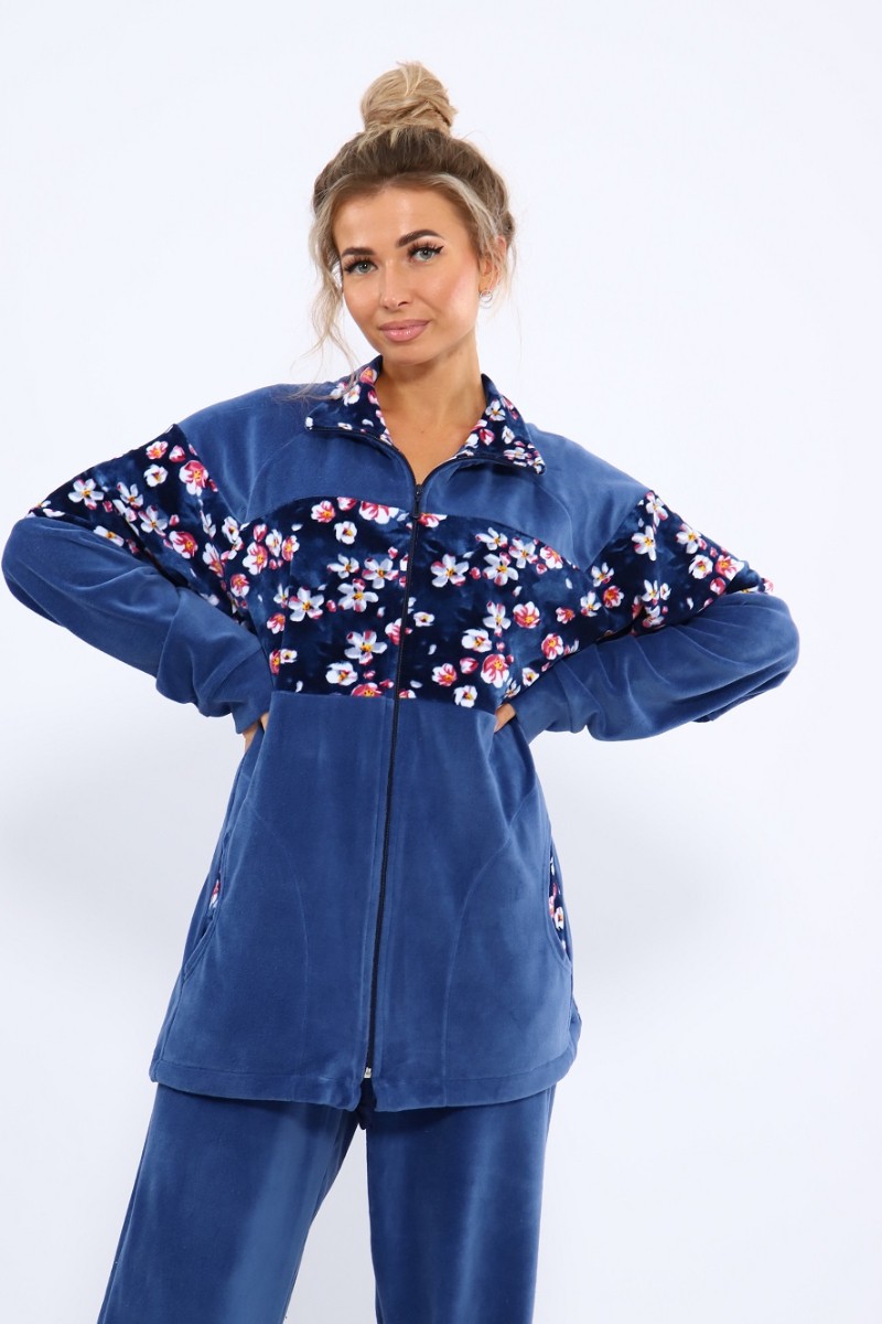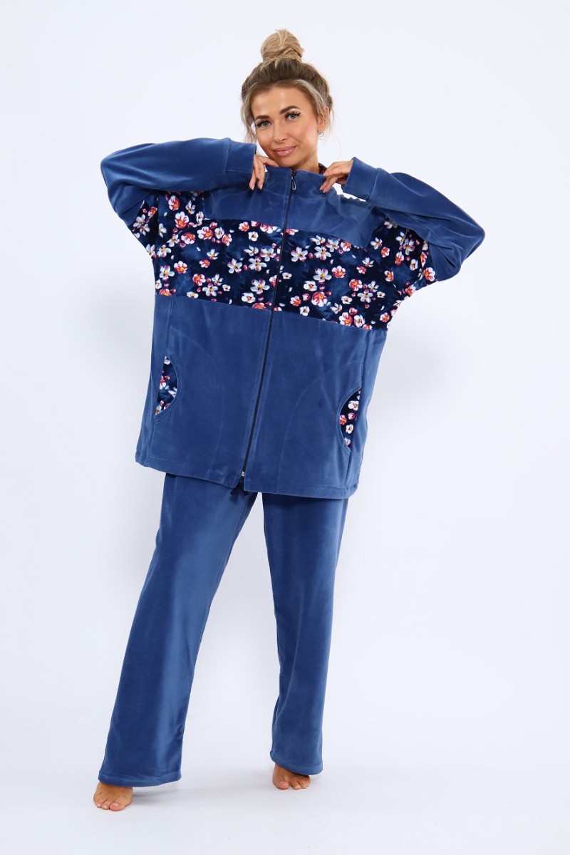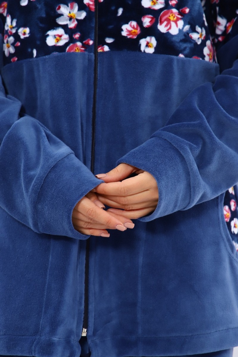 Костюм двойка женский 162 велюр (последний размер) темно-синий-белый-вишня 62,68