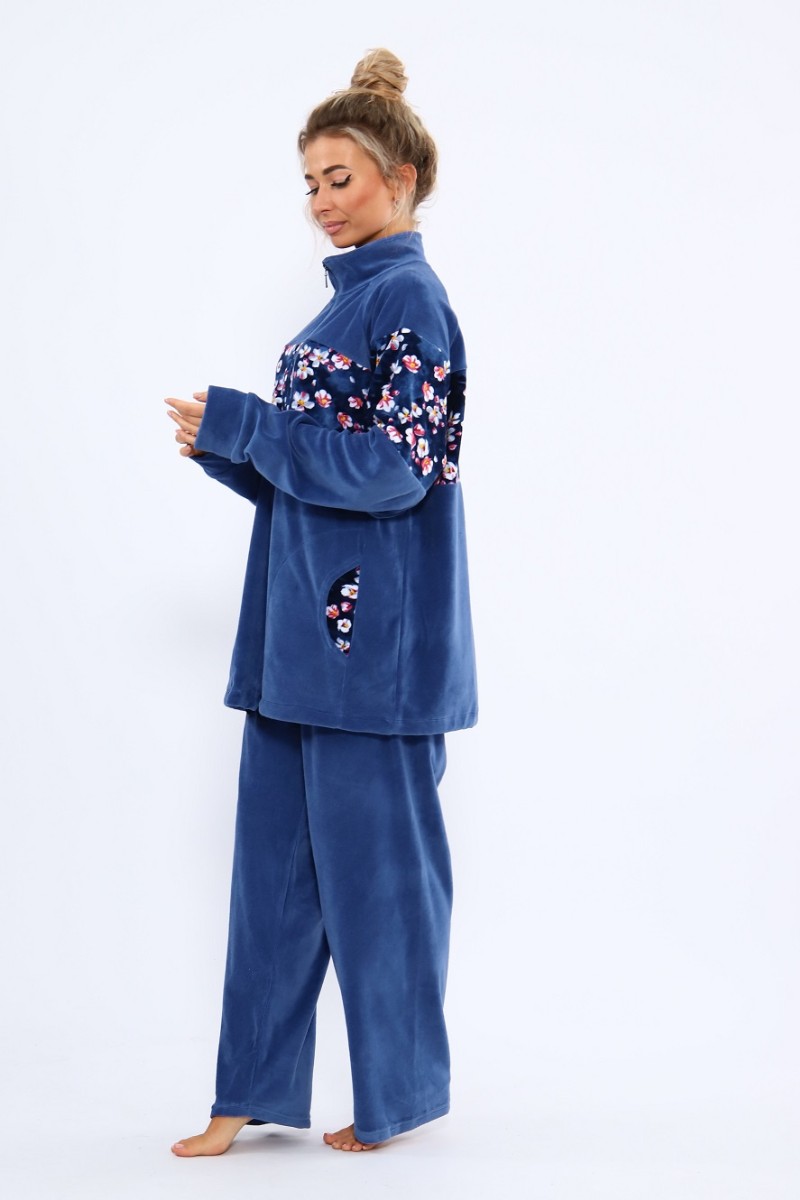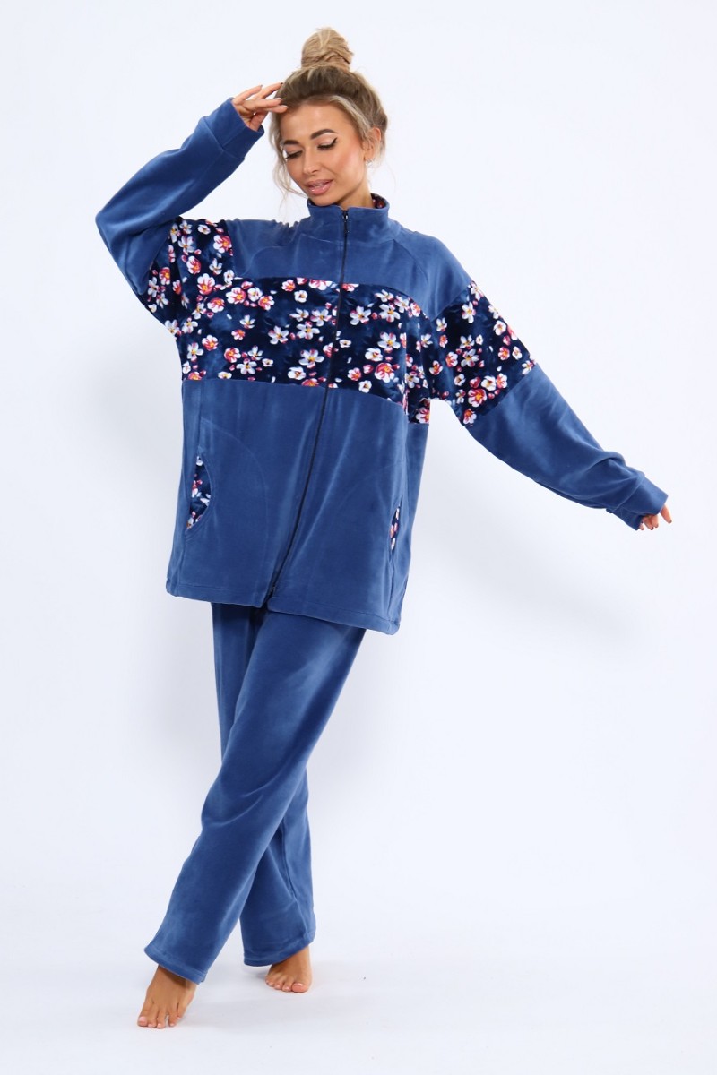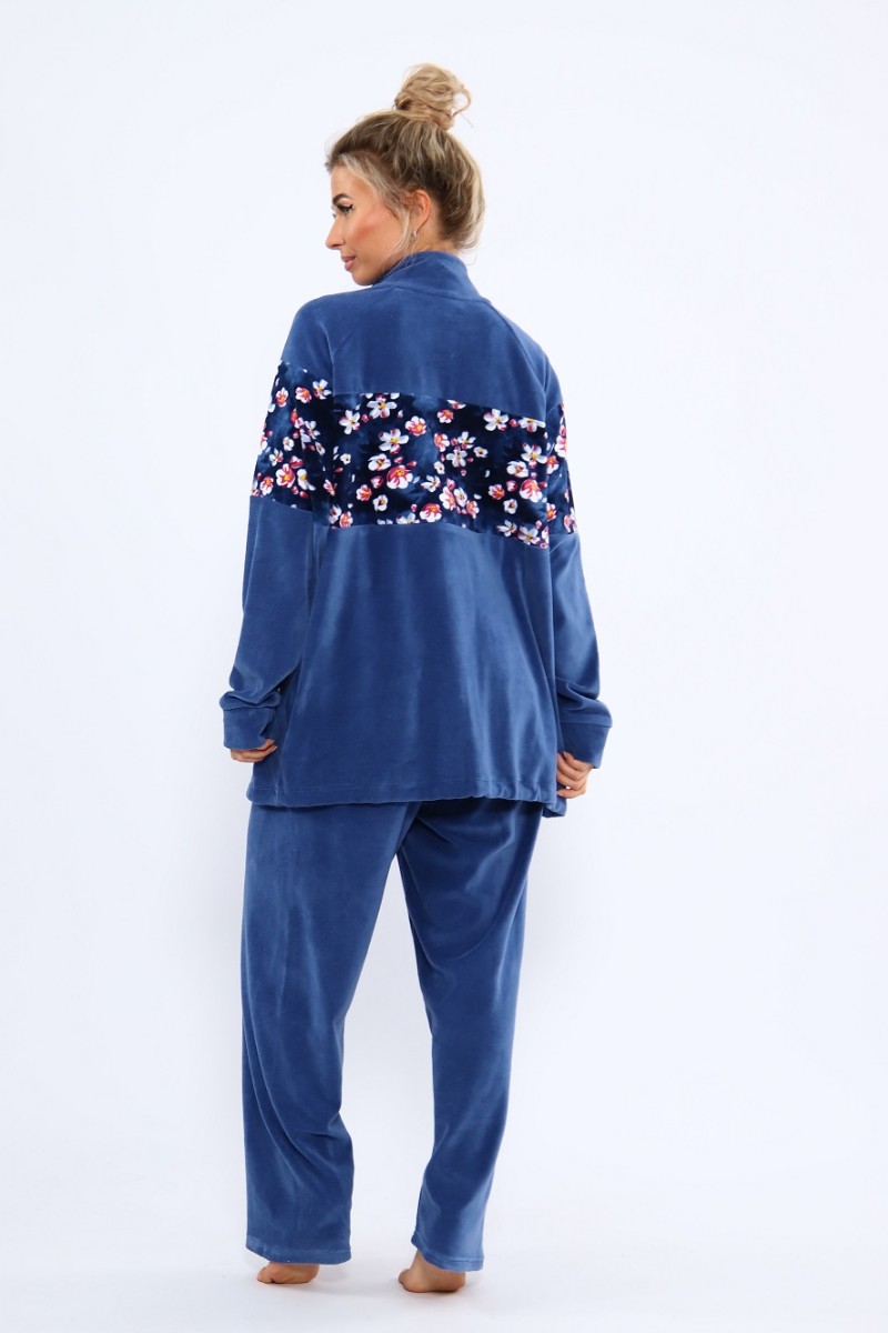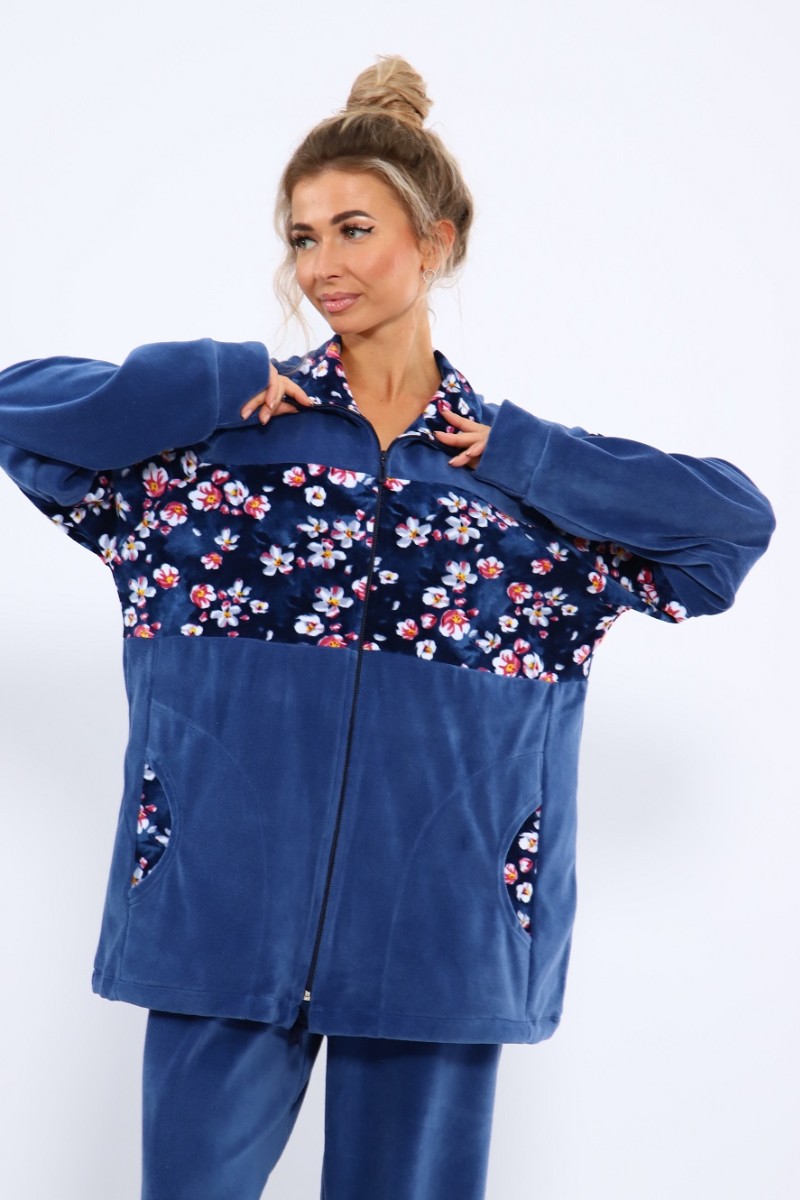 Костюм двойка женский 162 велюр (последний размер) темно-синий-белый-вишня 62,68