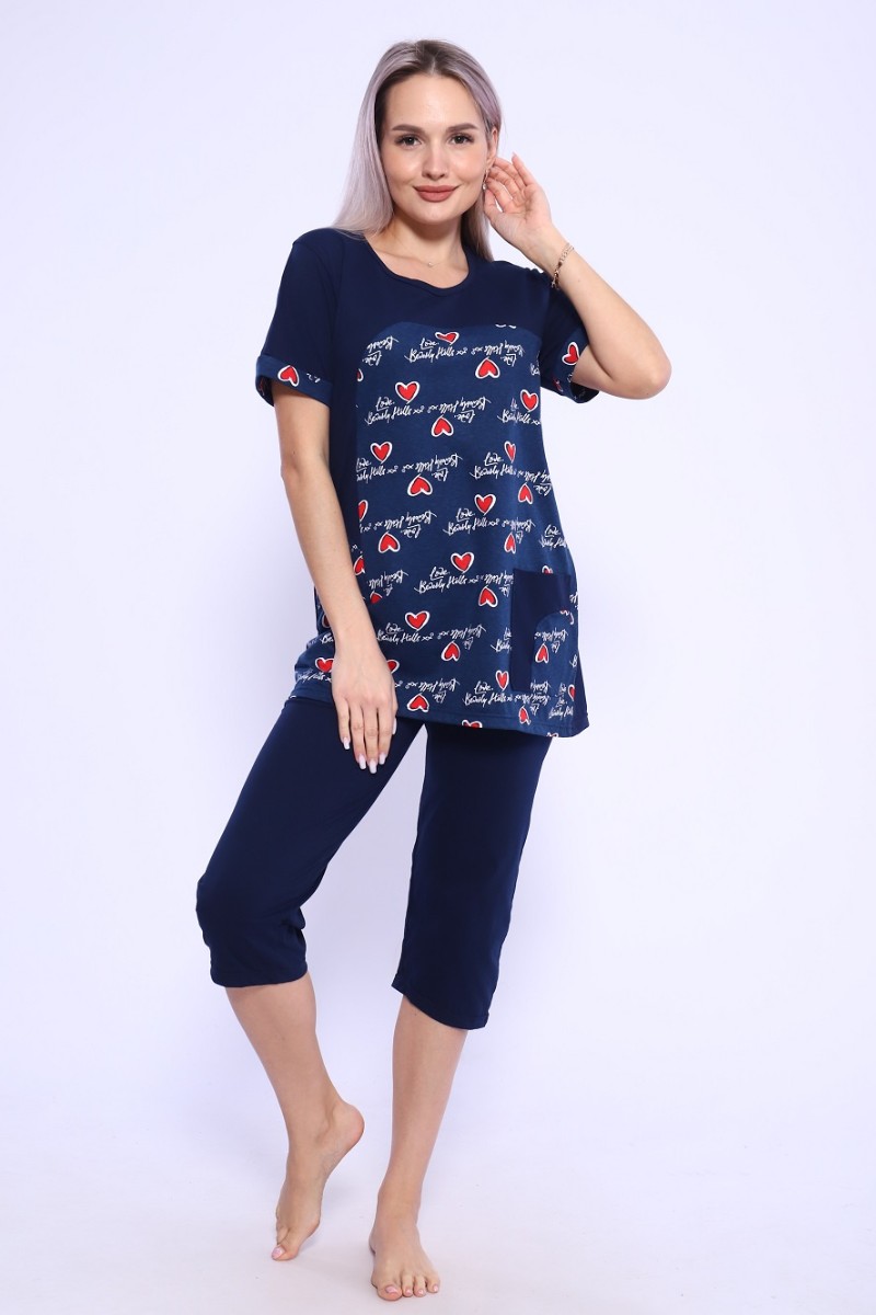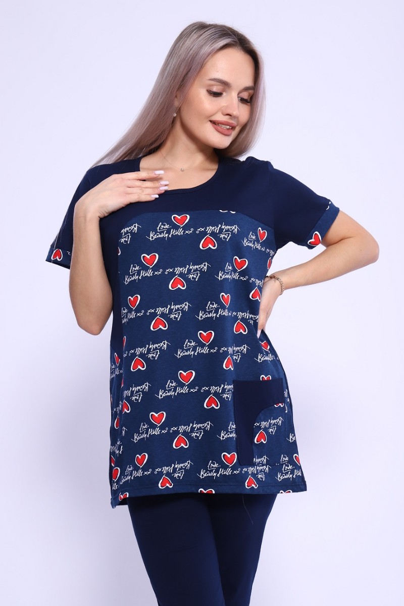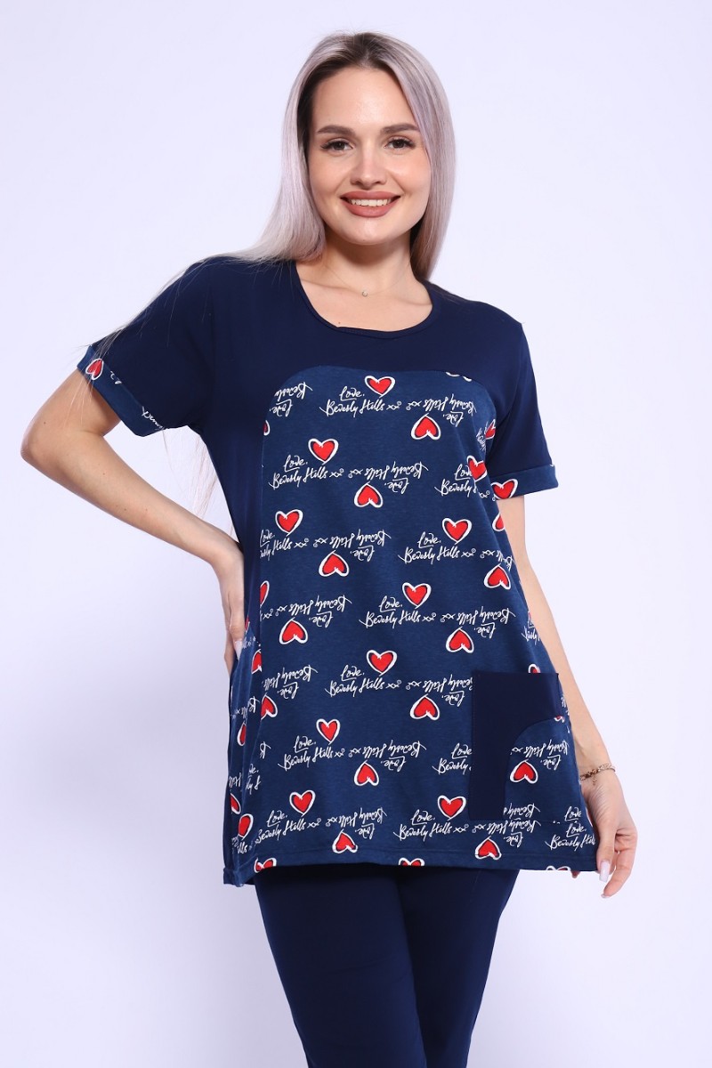 Костюм двойка женский 012 кулирка (последний размер) синий-красный-сердечки 56-58