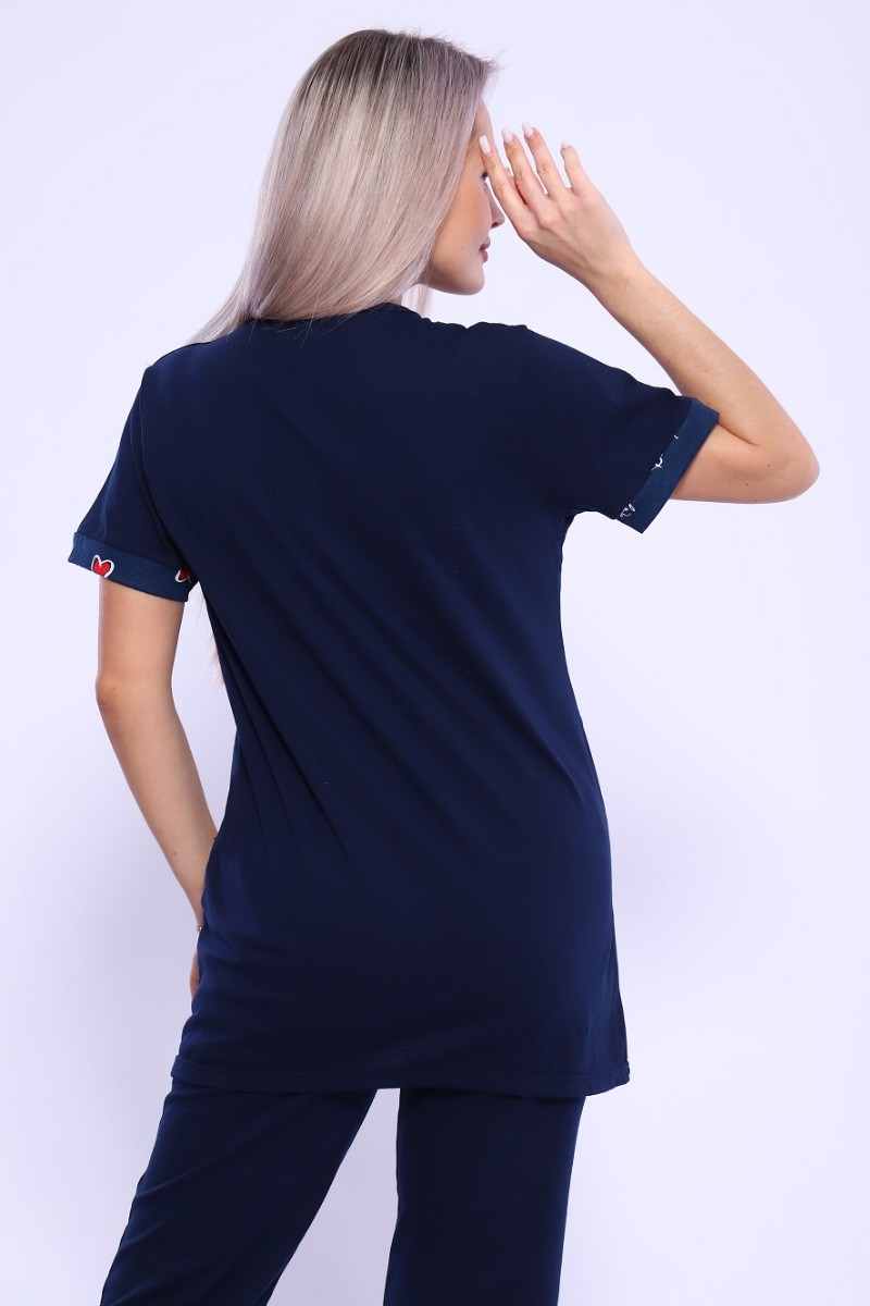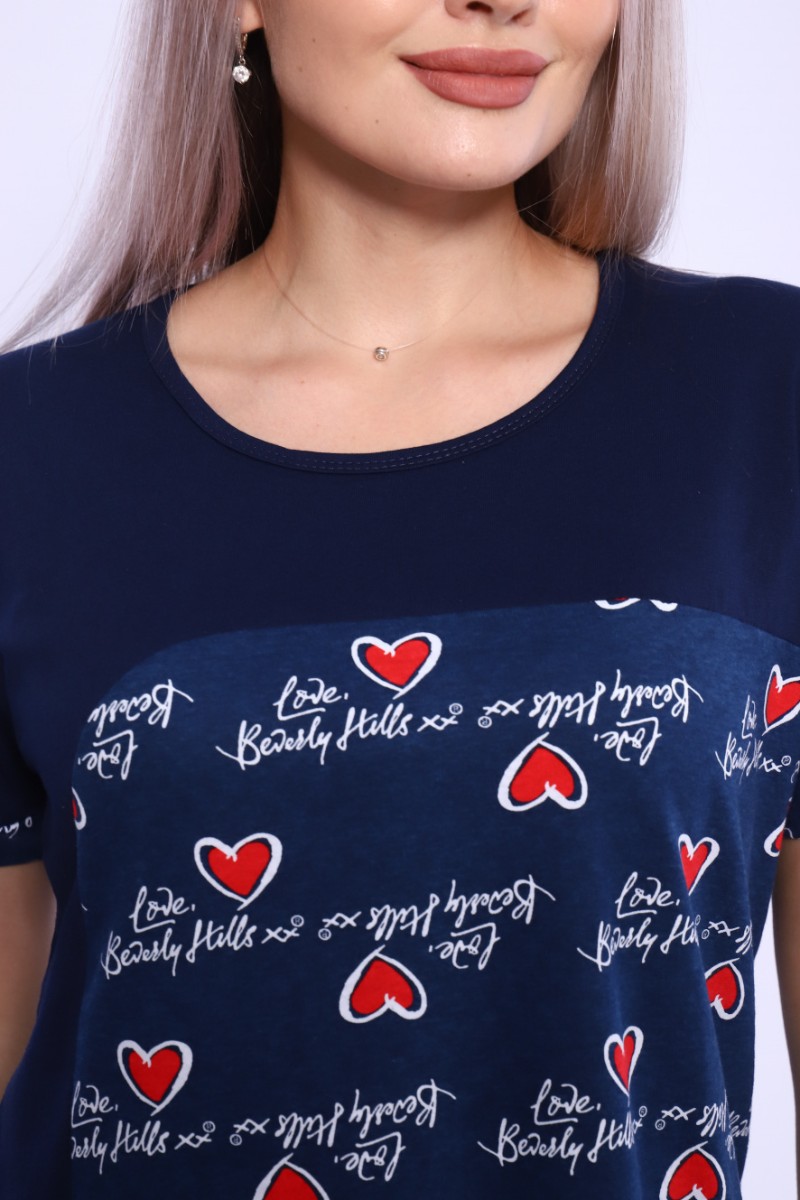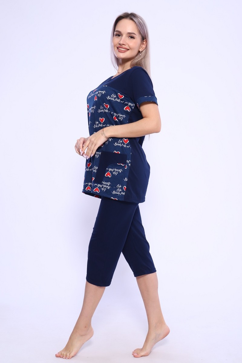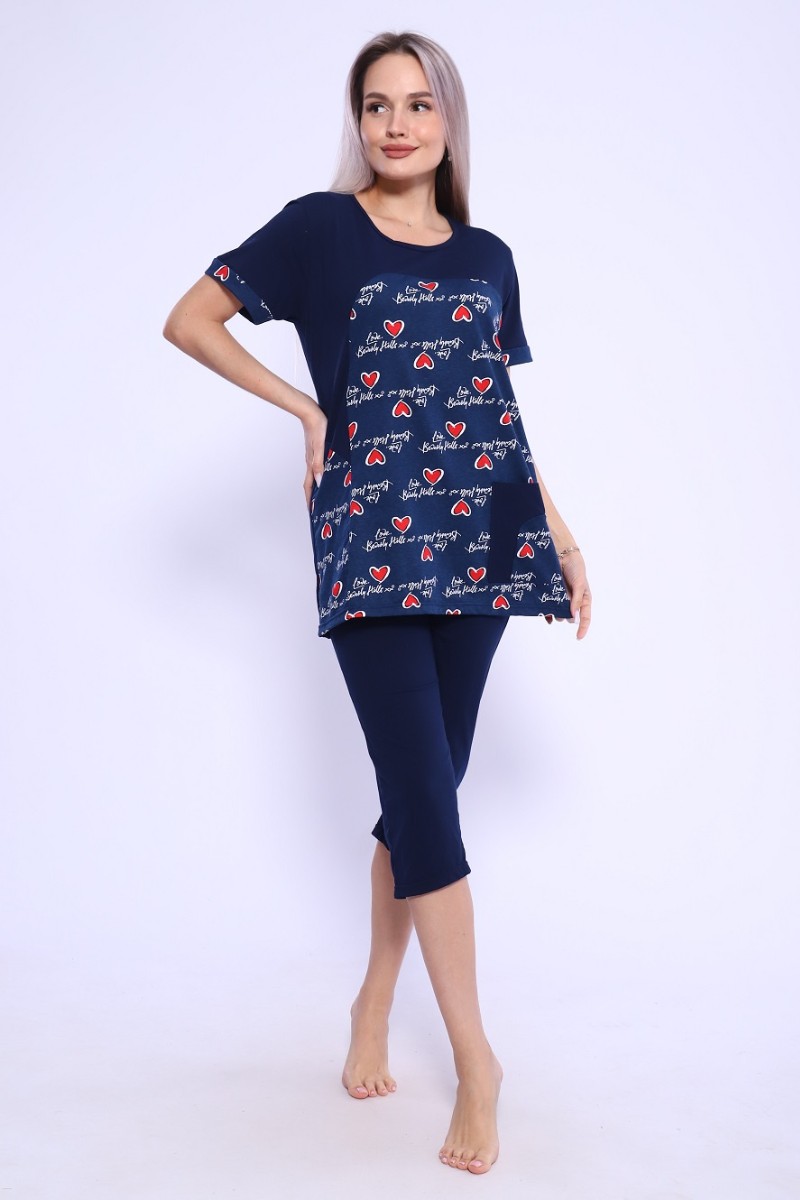 Костюм двойка женский 012 кулирка (последний размер) синий-красный-сердечки 56-58