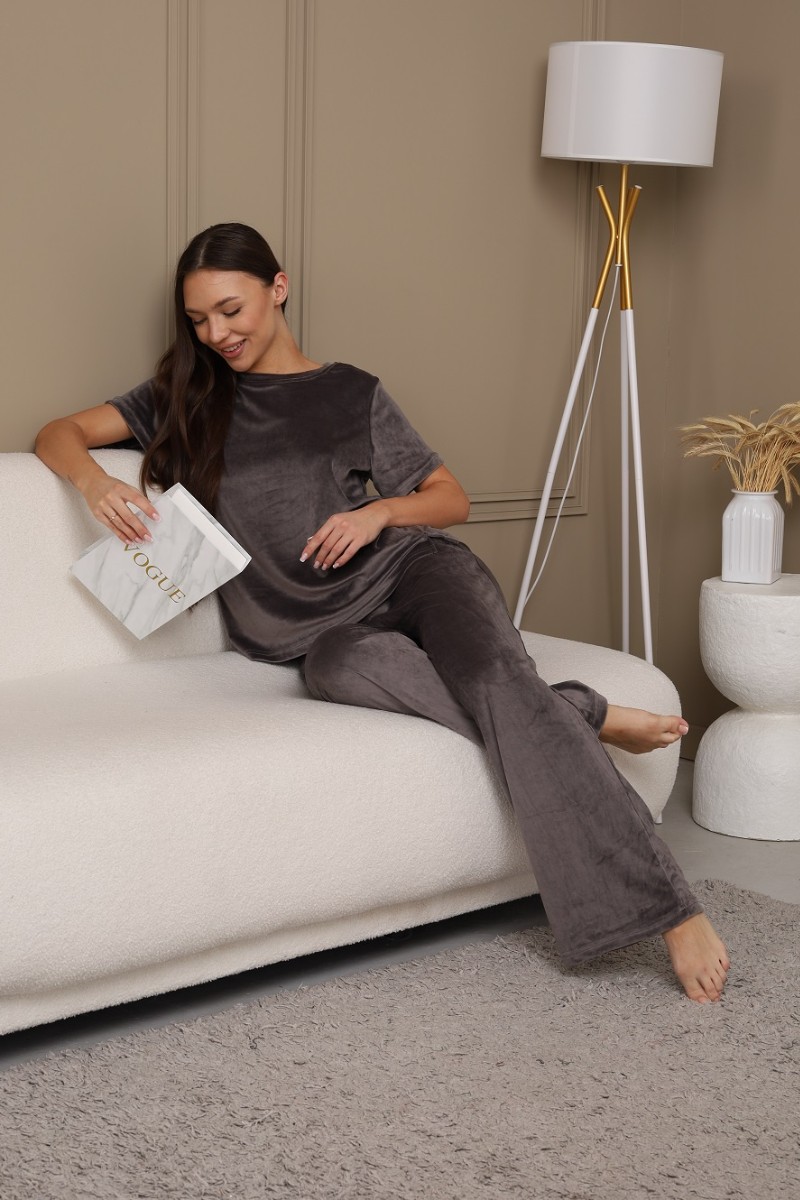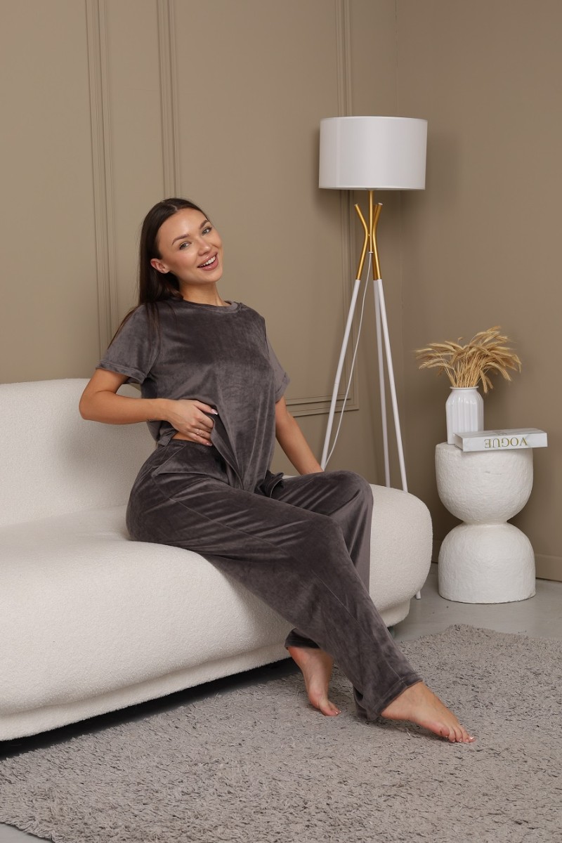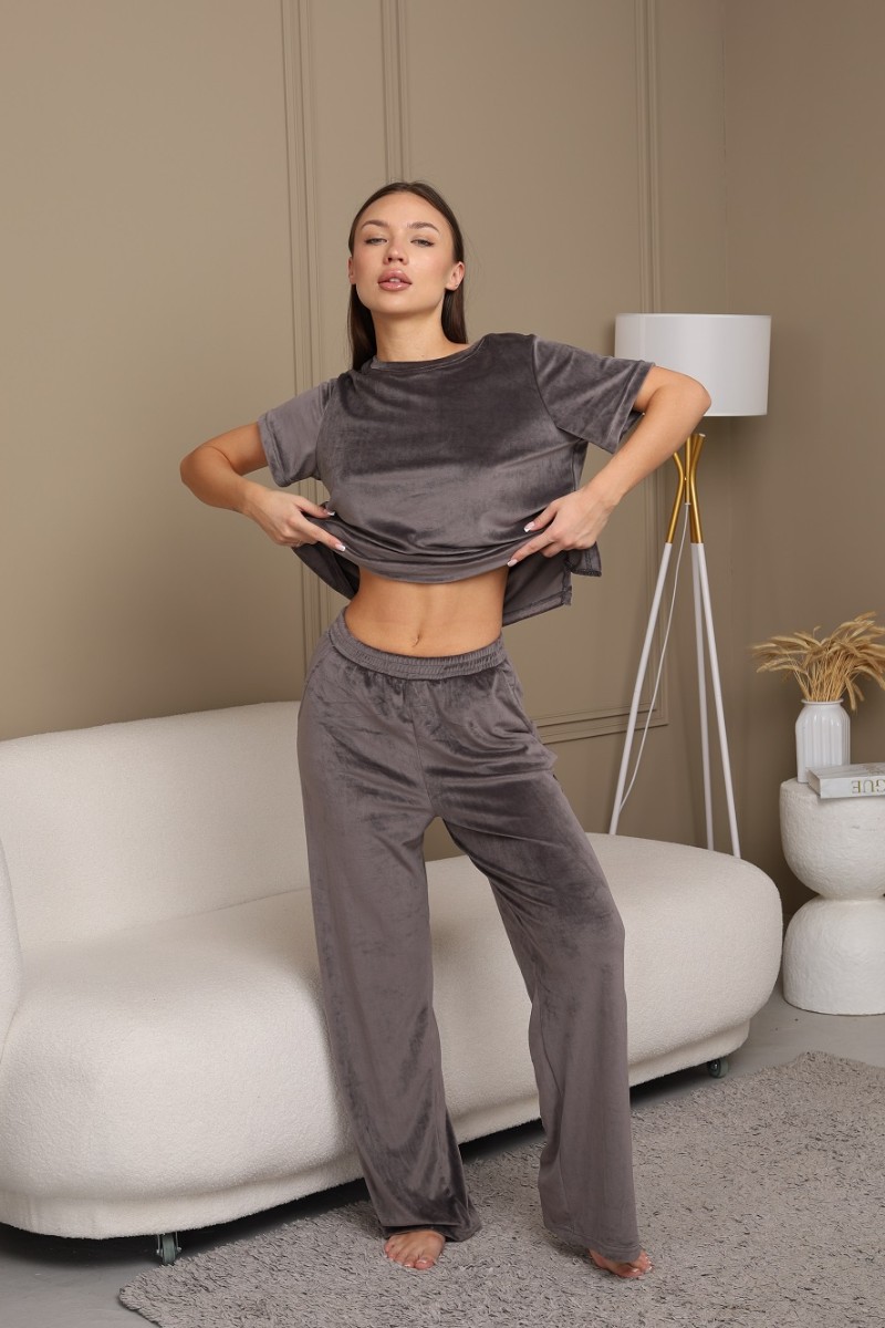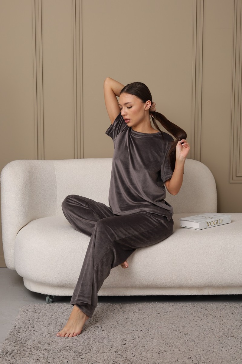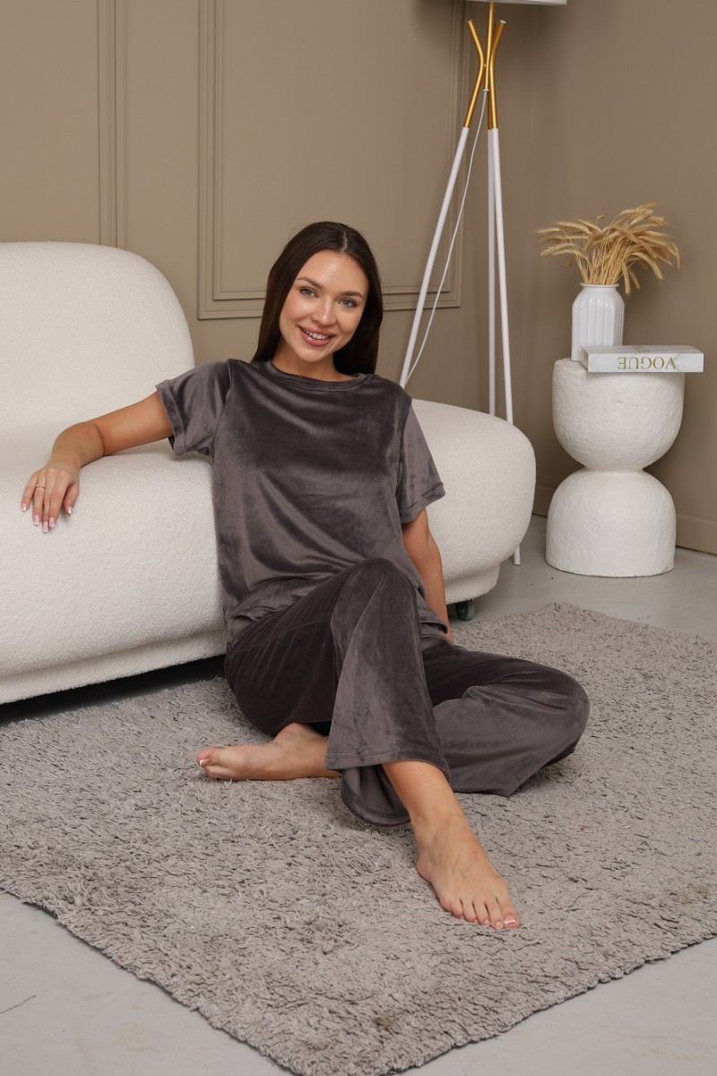 Костюм двойка женский 729 велюр (последний размер) графитовый 50