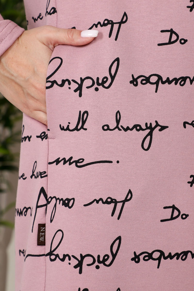 Представляем Вашему вниманию стильное и практичное женское платье свободного кроя. Ткань украшена эффектным принтом с надписями. Модель выполнена из мягкого, высококачественного материала, который хорошо пропускает воздух, позволяя коже дышать. Идеально подходит как для работы, так и для прогулок.