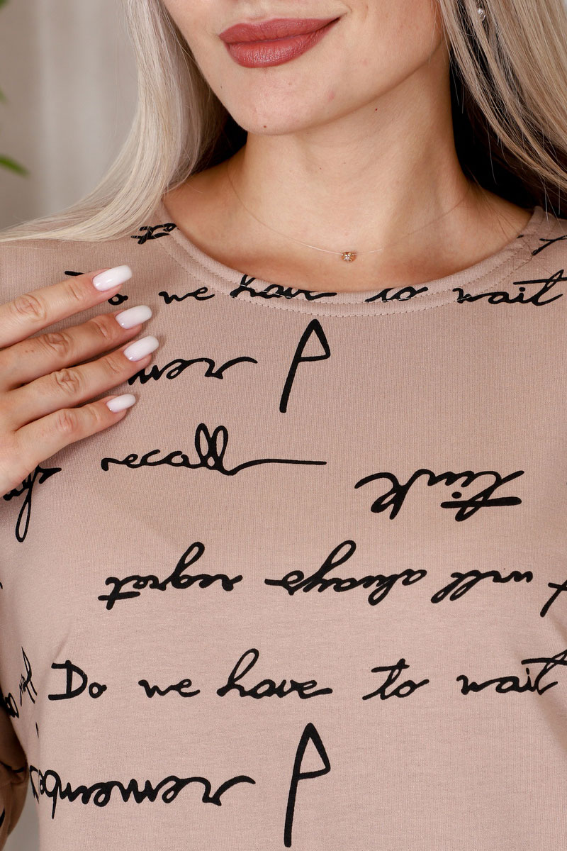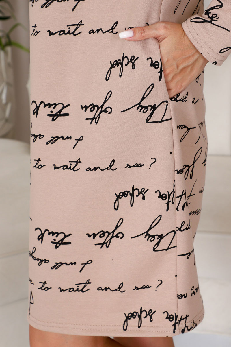 Представляем Вашему вниманию стильное и практичное женское платье свободного кроя. Ткань украшена эффектным принтом с надписями. Модель выполнена из мягкого, высококачественного материала, который хорошо пропускает воздух, позволяя коже дышать. Идеально подходит как для работы, так и для прогулок.
