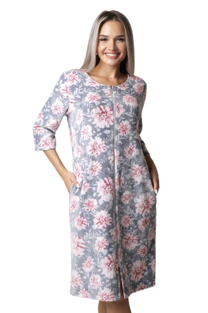 Халат женский Х439 велюр (последний размер) светло-серый 46