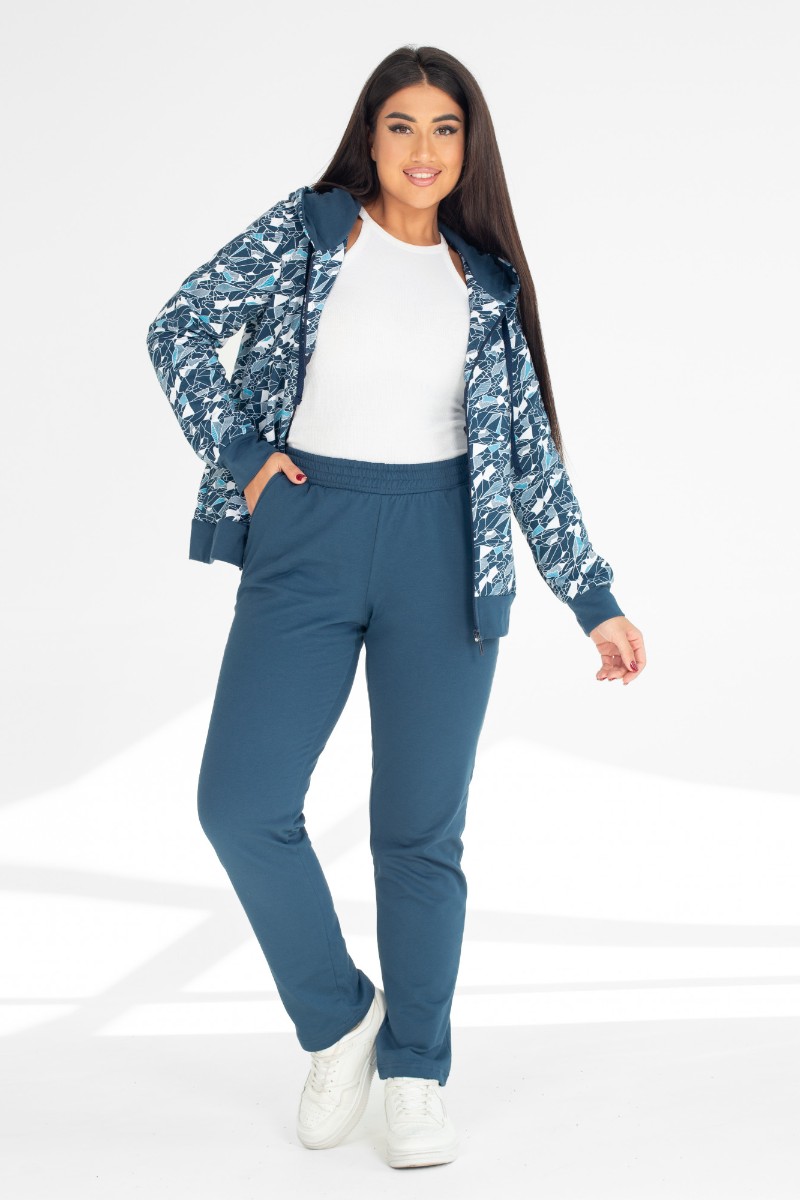 Представляем Вашему вниманию стильный женский костюм двойку прямого силуэта, состоящий из удобной куртки и длинных брюк. Женская куртка на центральной застёжке молния, длиной до линии бедра с двойным комбинированным капюшоном и овальными карманами в боковых швах. Обеспечит максимум комфорта во время повседневной носки в прохладную погоду.
