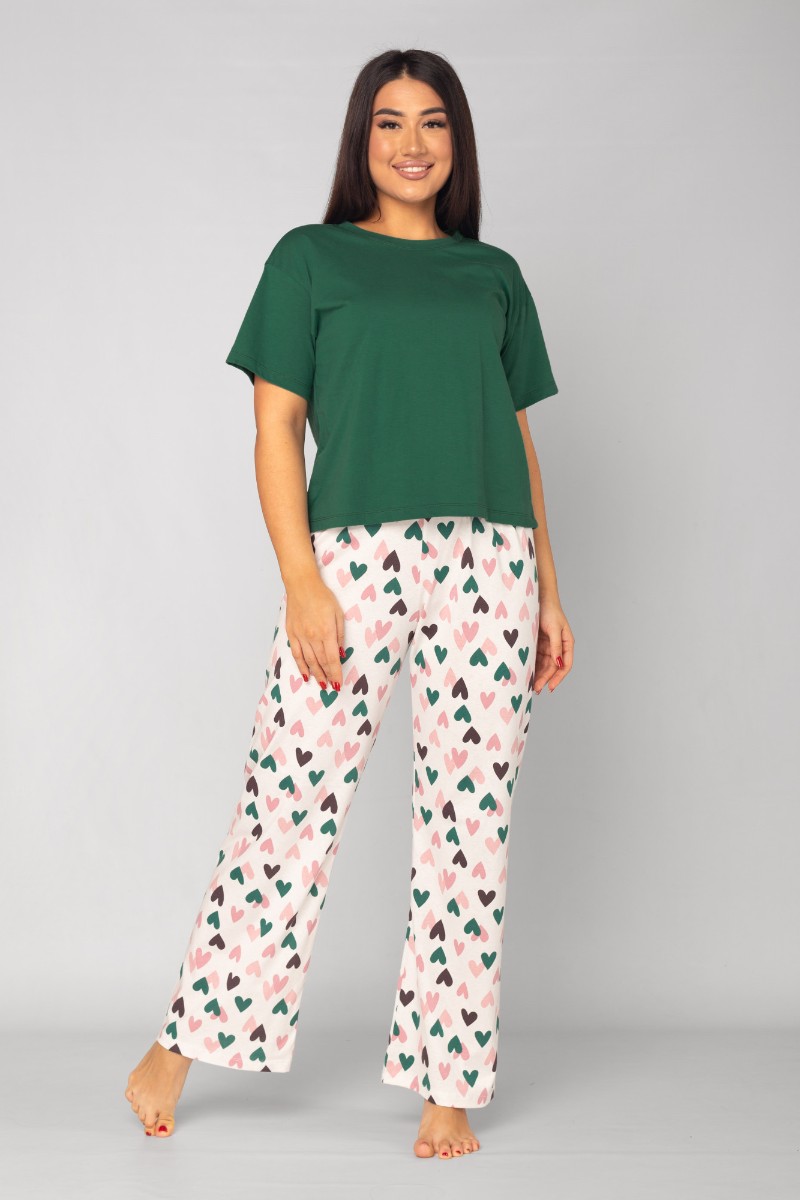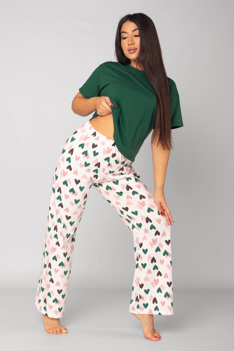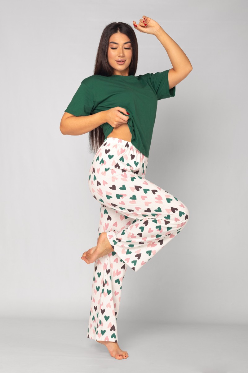 Представляем Вашему вниманию домашний женский комплект, который позволит Вашей коже дышать и не будет стеснять движений. Приятная, мягкая к телу ткань, из которой изготовлен костюм, не скатывается, сохраняет форму и цвет после множества стирок. Комплект со штанами и свободной футболкой подчеркнет все достоинства Вашей фигуры и идеально впишется в гардероб. Красивый и удобный женский домашний костюм обеспечит Вам крепкий комфортный сон и стильный вид.