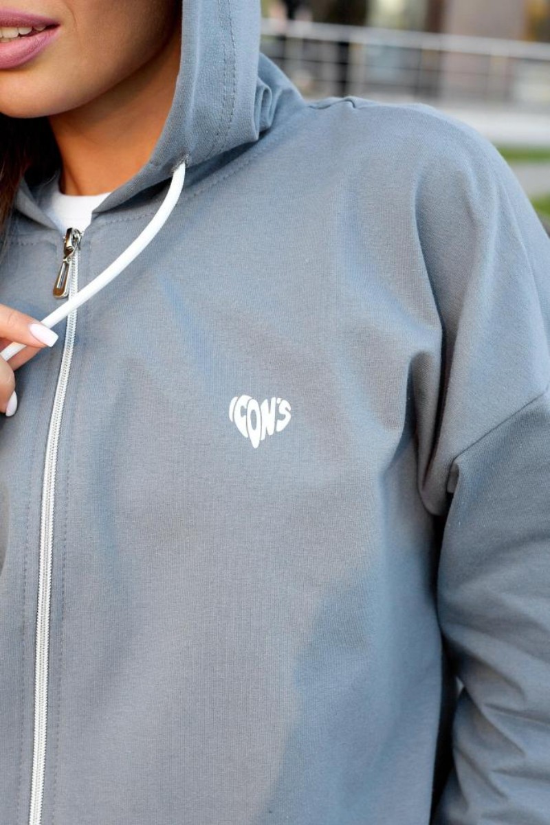 Представляем Вашему вниманию стильный женский костюм двойку, состоящий из толстовки, дополненной легким капюшоном и прочной застежкой-молнией, и брюк классической длины. Комплект обеспечит полную свободу движений и максимум комфорта в повседневной носке.