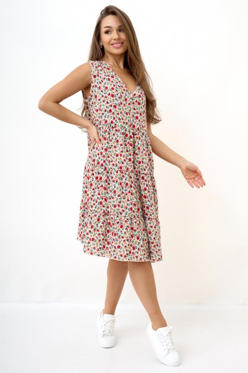 Представляем Вашему вниманию легкое, воздушное летнее женское платье "Саммер" свободного кроя, выполненное из тонкой вискозной ткани. Ткань не линяет и не теряет яркости. Платье отрезное выше линии талии, без рукава. Идеальный выбор для жаркого лета. Модель будет уместно смотреться как на прогулке, так и на работе, а также подойдет под любой формат мероприятия.
