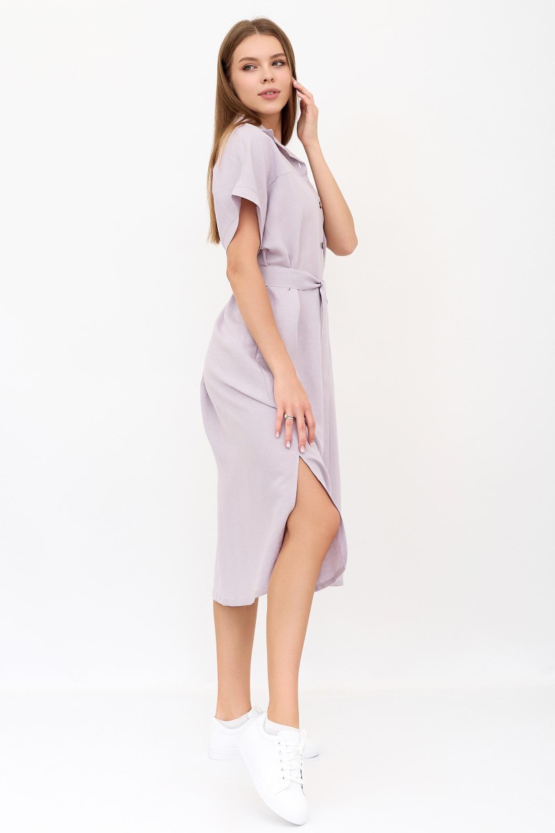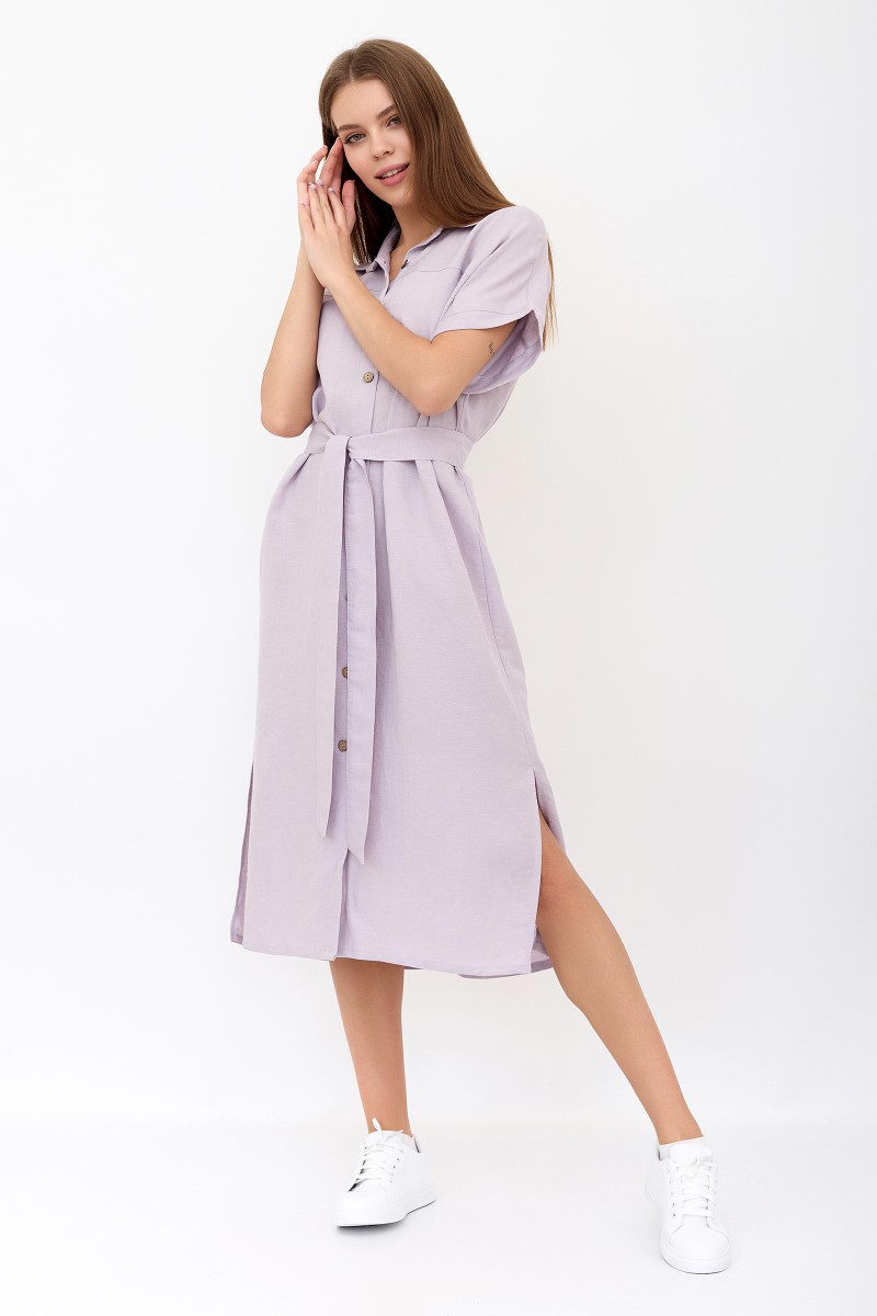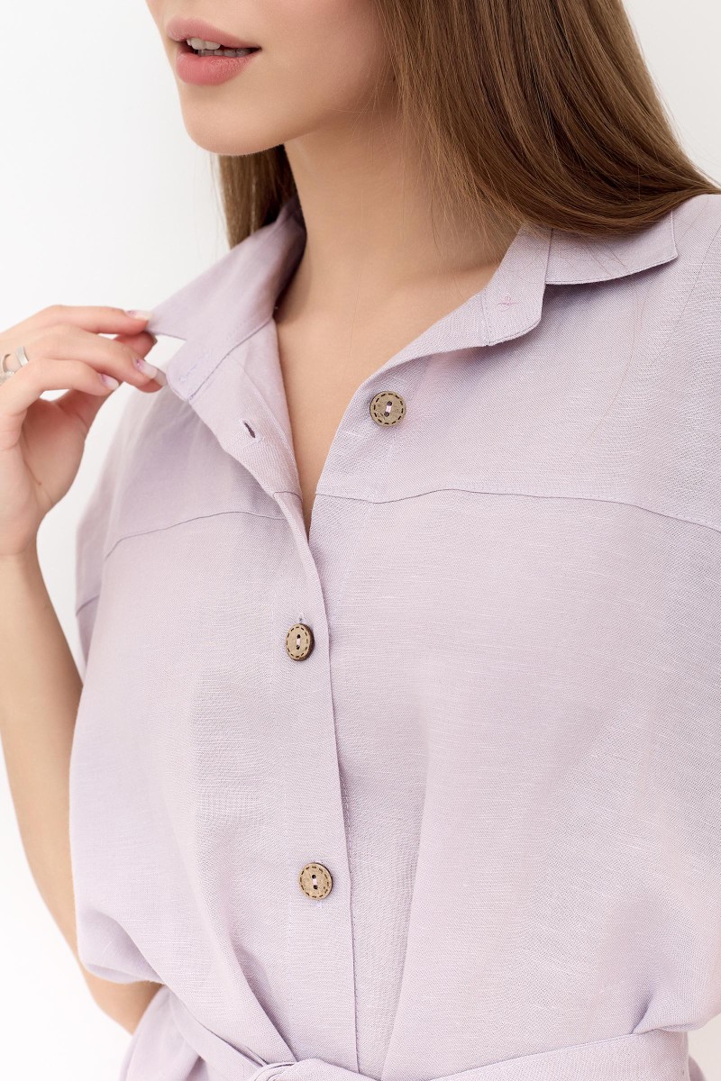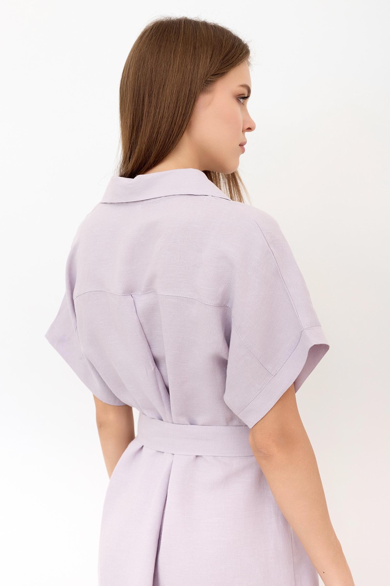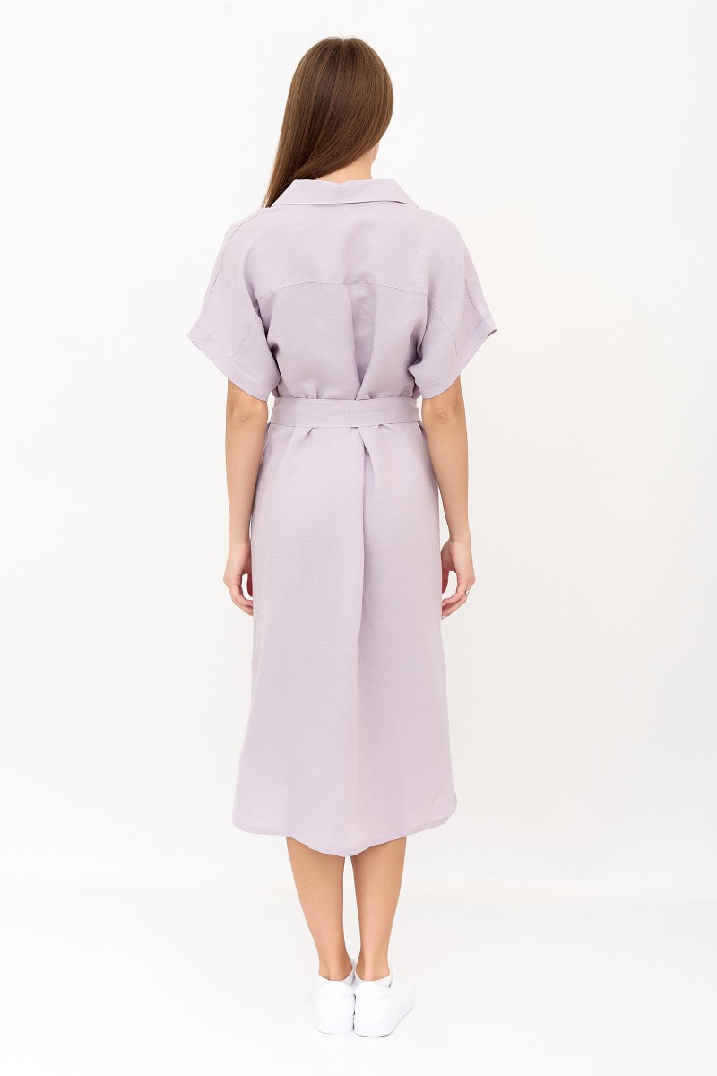 Платье женское "Милитари С" лён (последний размер) сиреневый 48