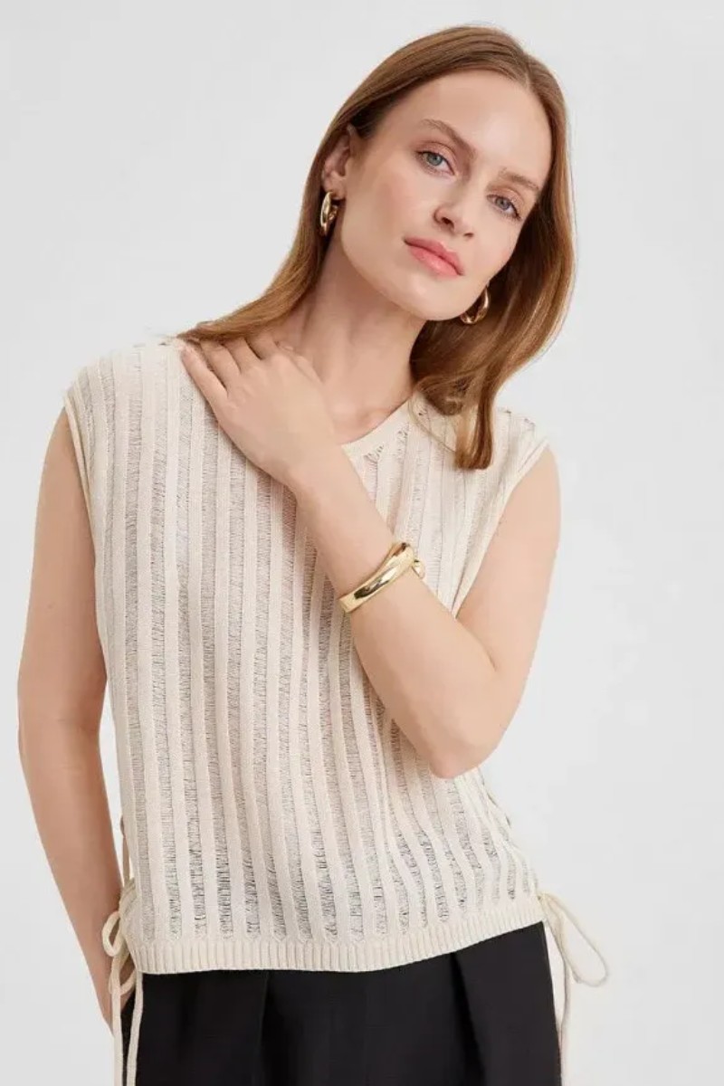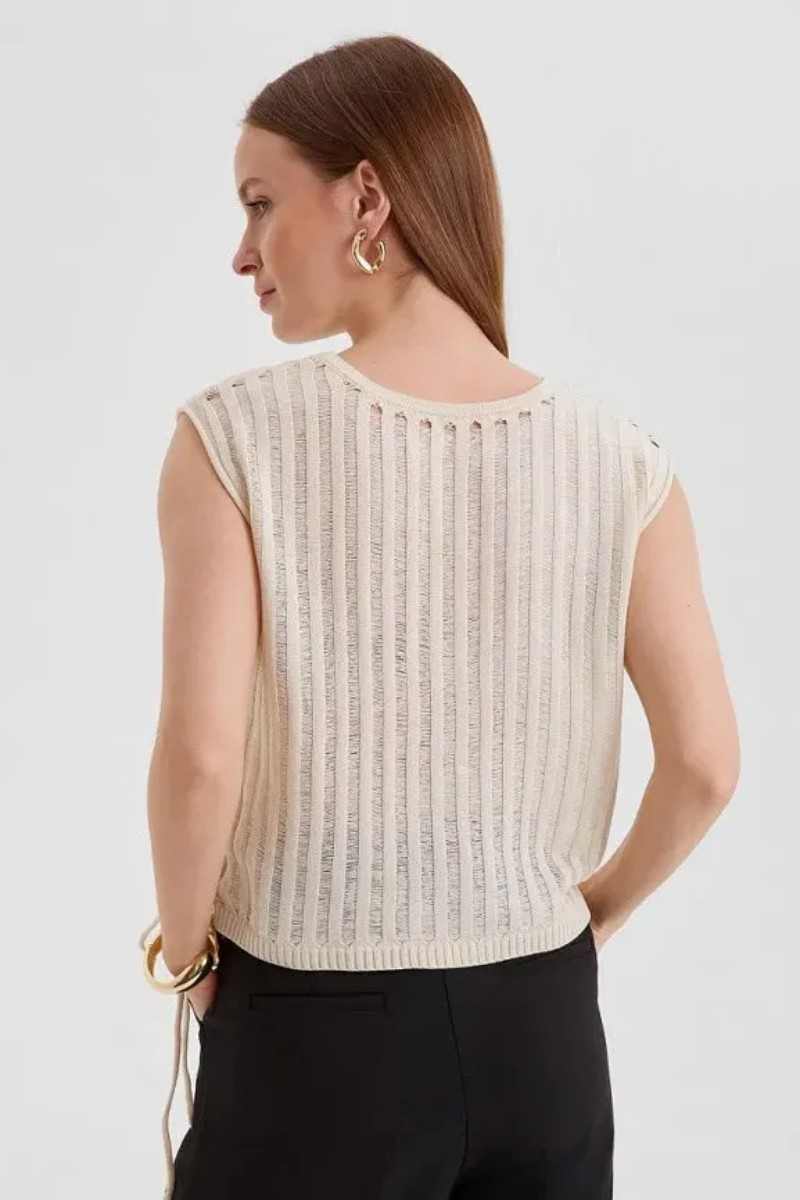 Майка женская Б 10128 трикотажное полотно+пряжа (последний размер) бежевый 50-52