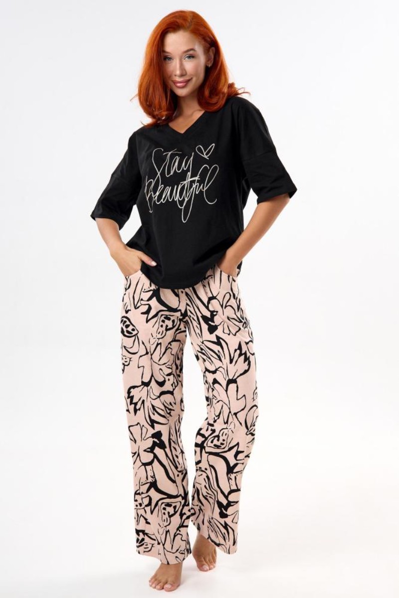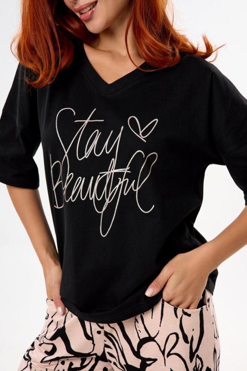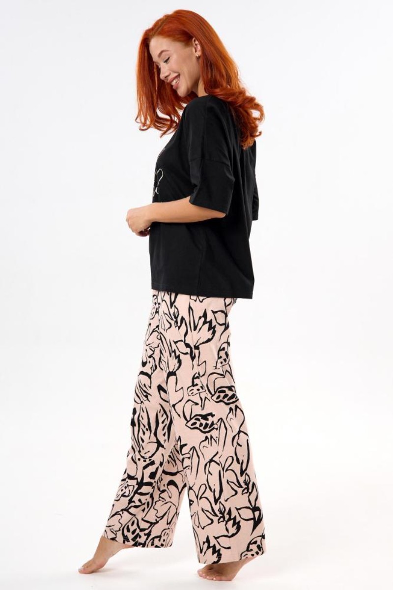 Пижама женская "Кэр Ч" кулирка (последний размер) черный-бежевый 56