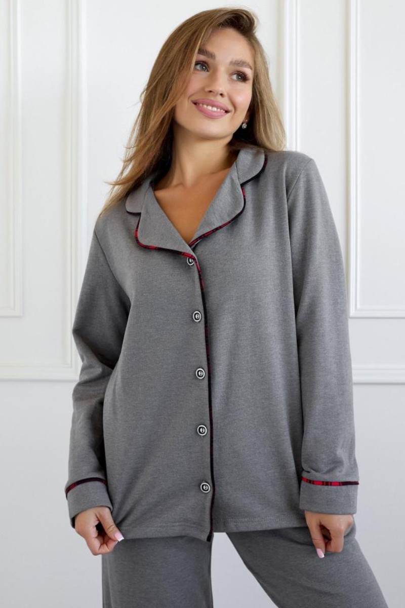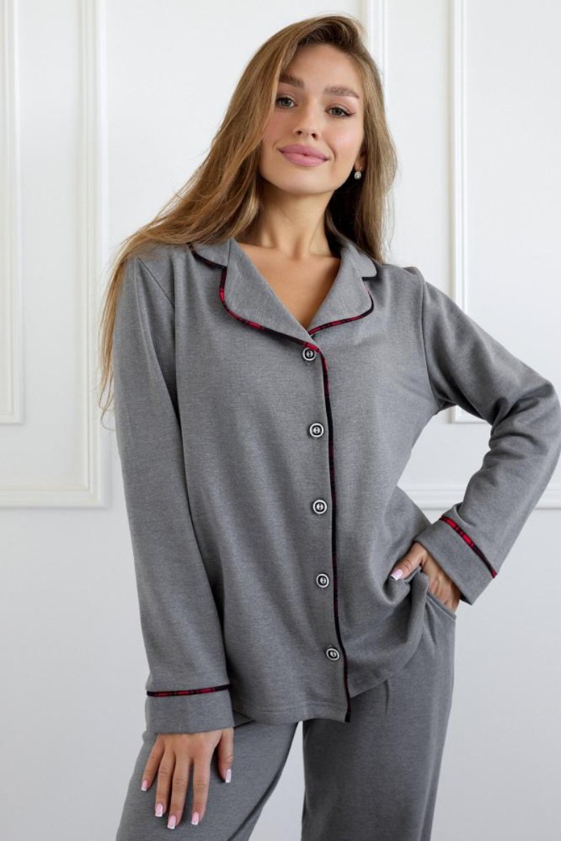 Пижама женская "Ирина" футер 2-х нитка с начесом (последний размер) серый 56