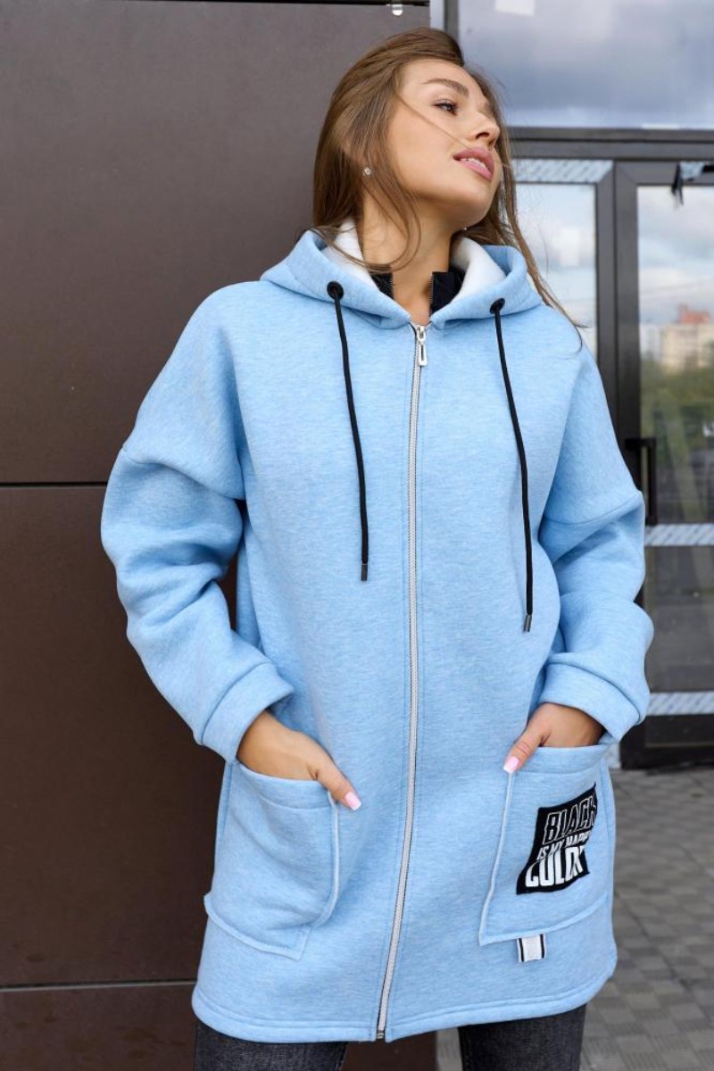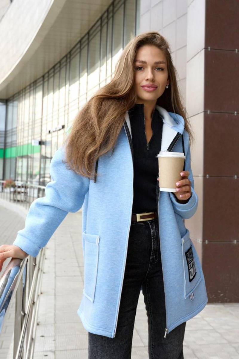 Толстовка женская укороченная "Алина" 10230 футер 3-х нитка с начёсом (последний размер) голубой 54