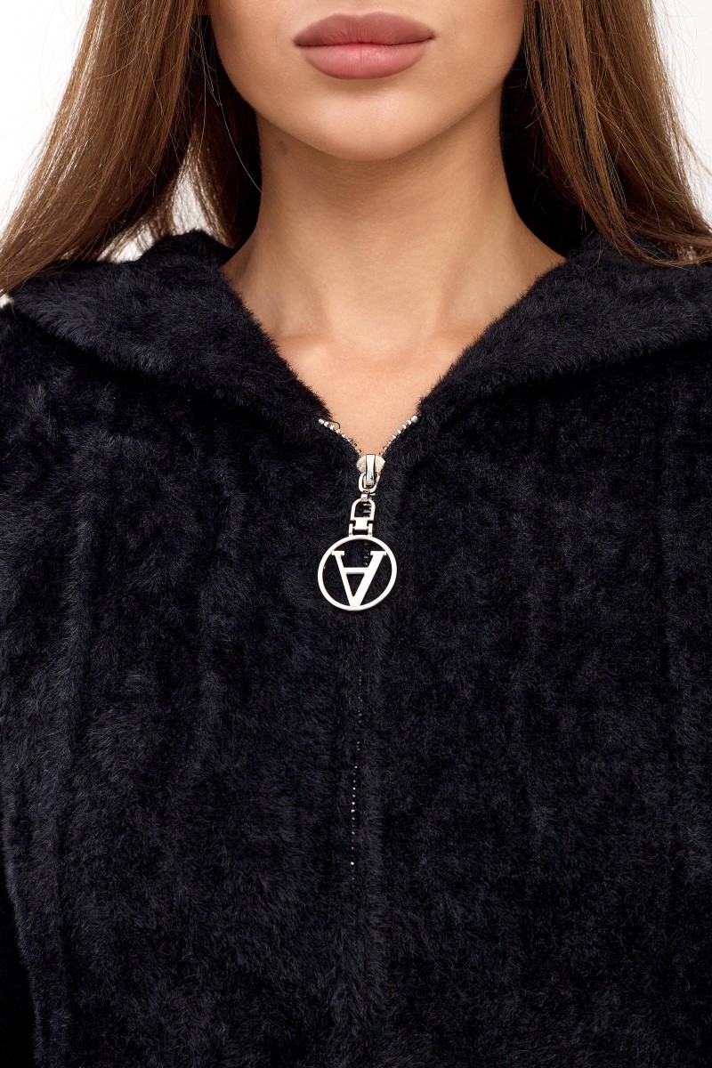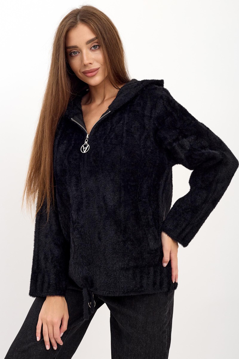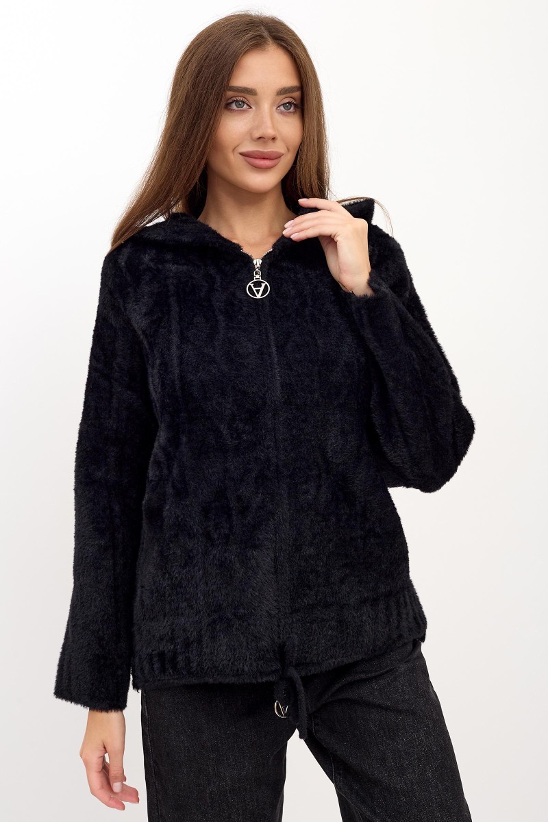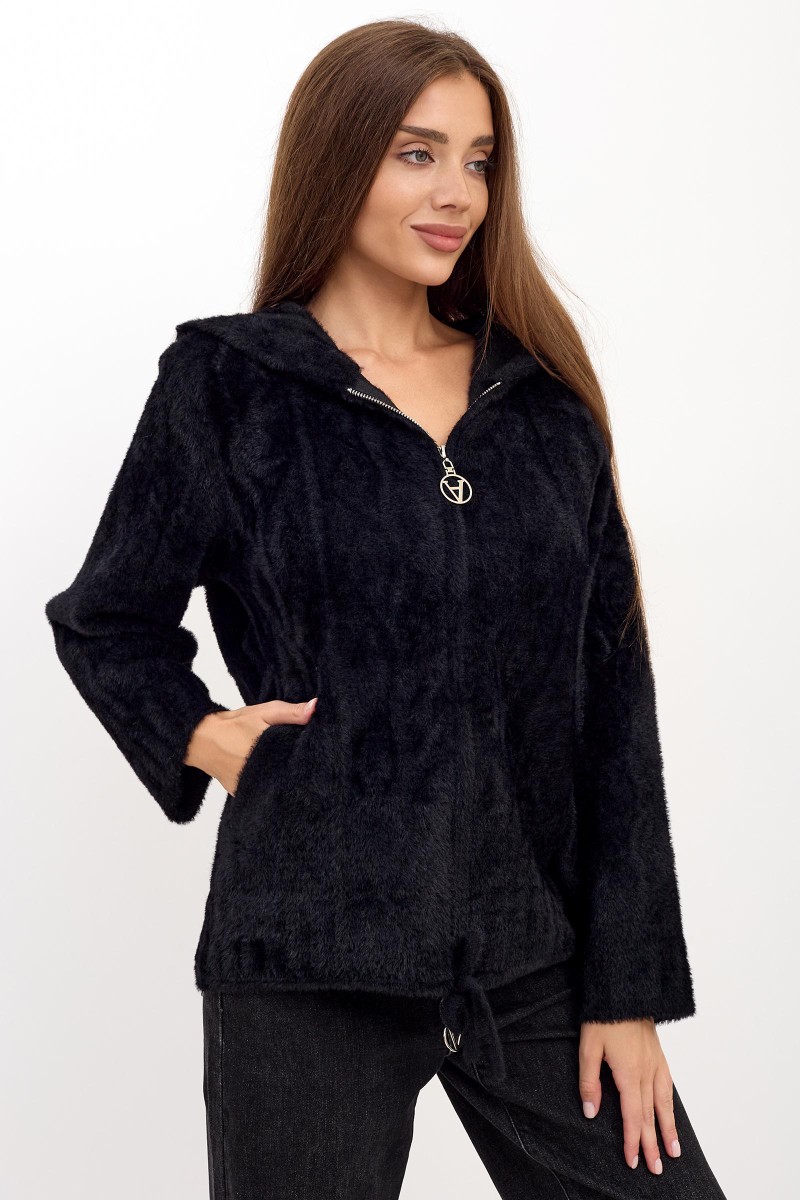 Представляем Вашему вниманию уютный женский жакет на молнии и с капюшоном. Модель сшита из приятного телу, высококачественного материала, устойчивого к износу. Изделие дополнено карманами по бокам.