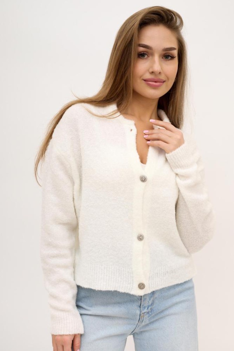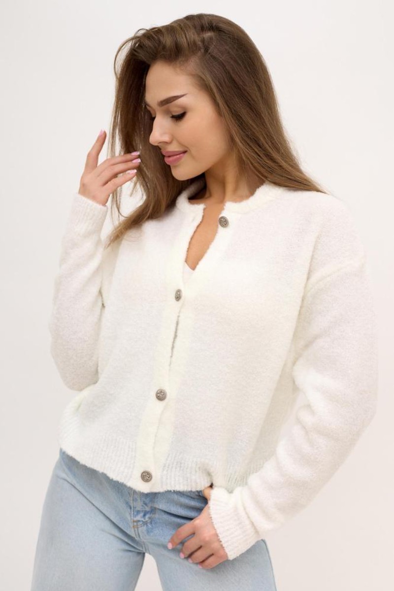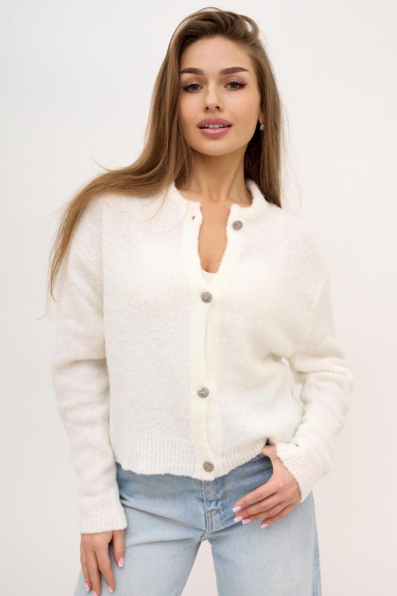 Кардиган женский "Букле Б" вязаное полотно (последний размер) белый M-L