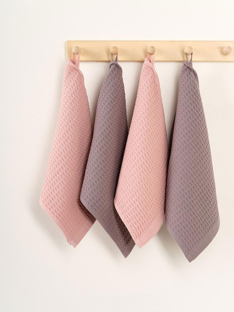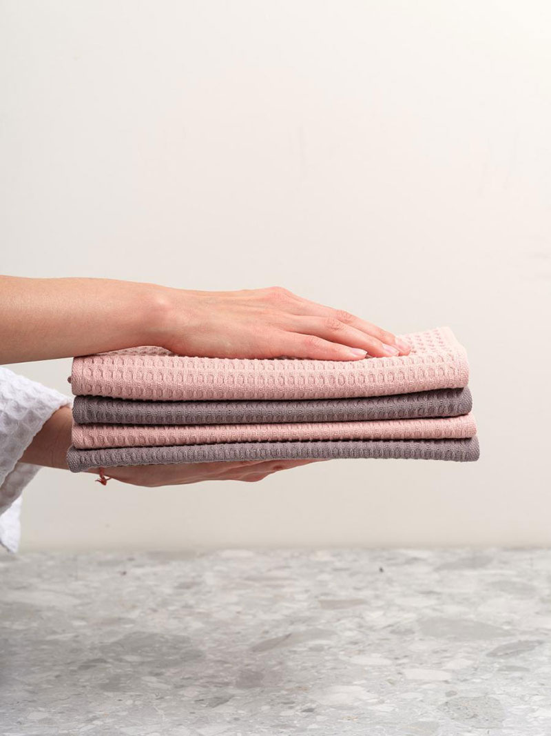 Набор вафельных полотенец "Ночь Нежна" графит-розовый 4 шт.