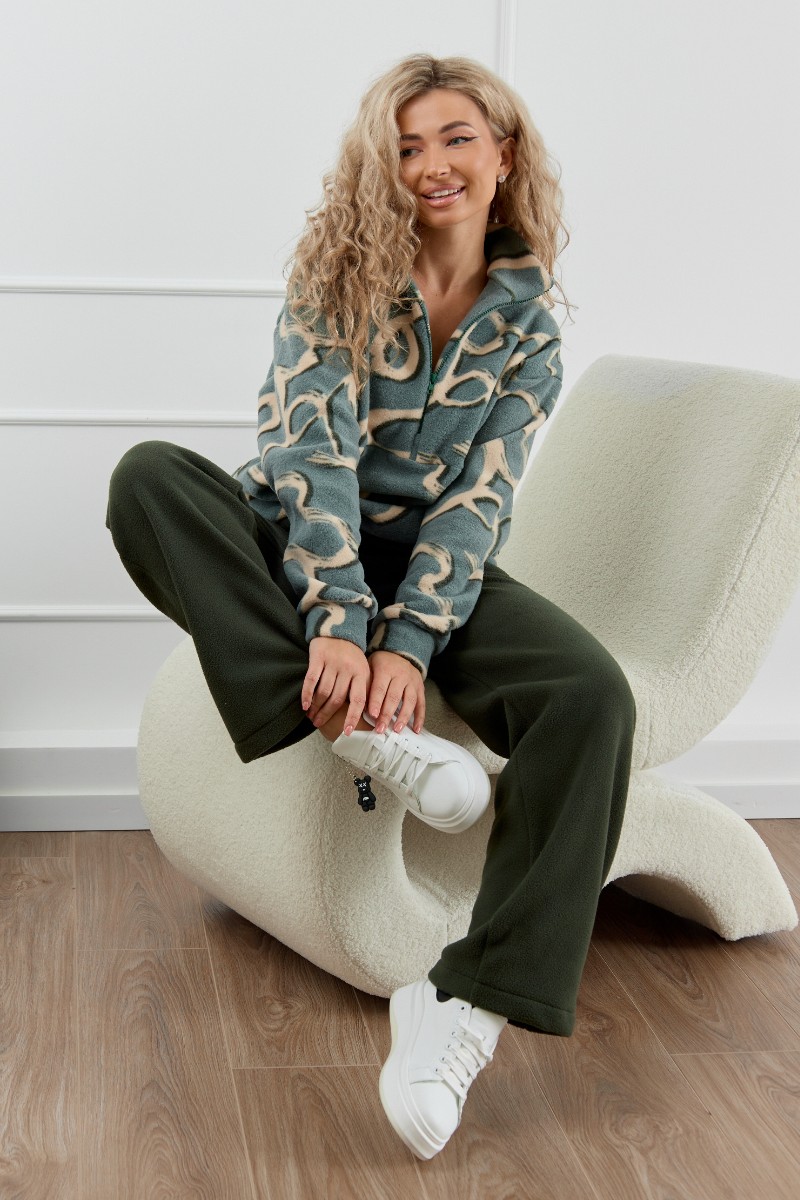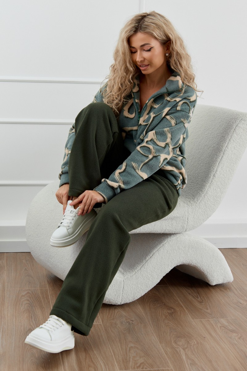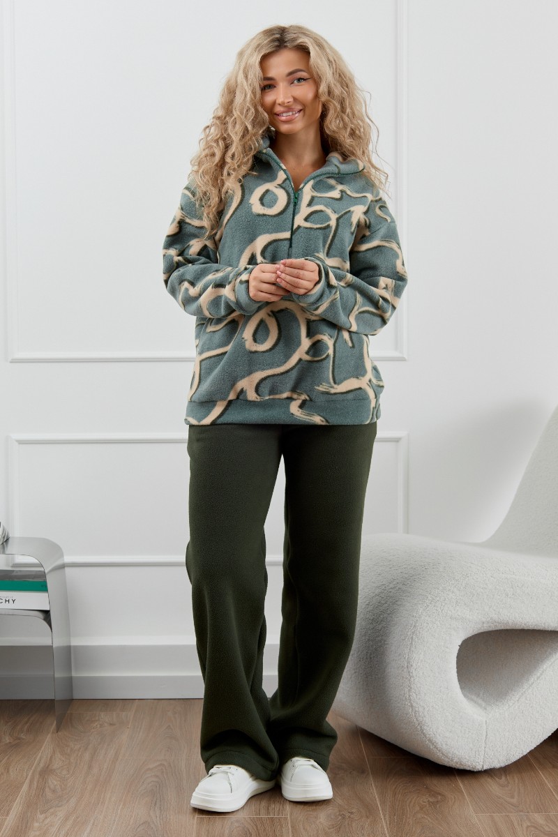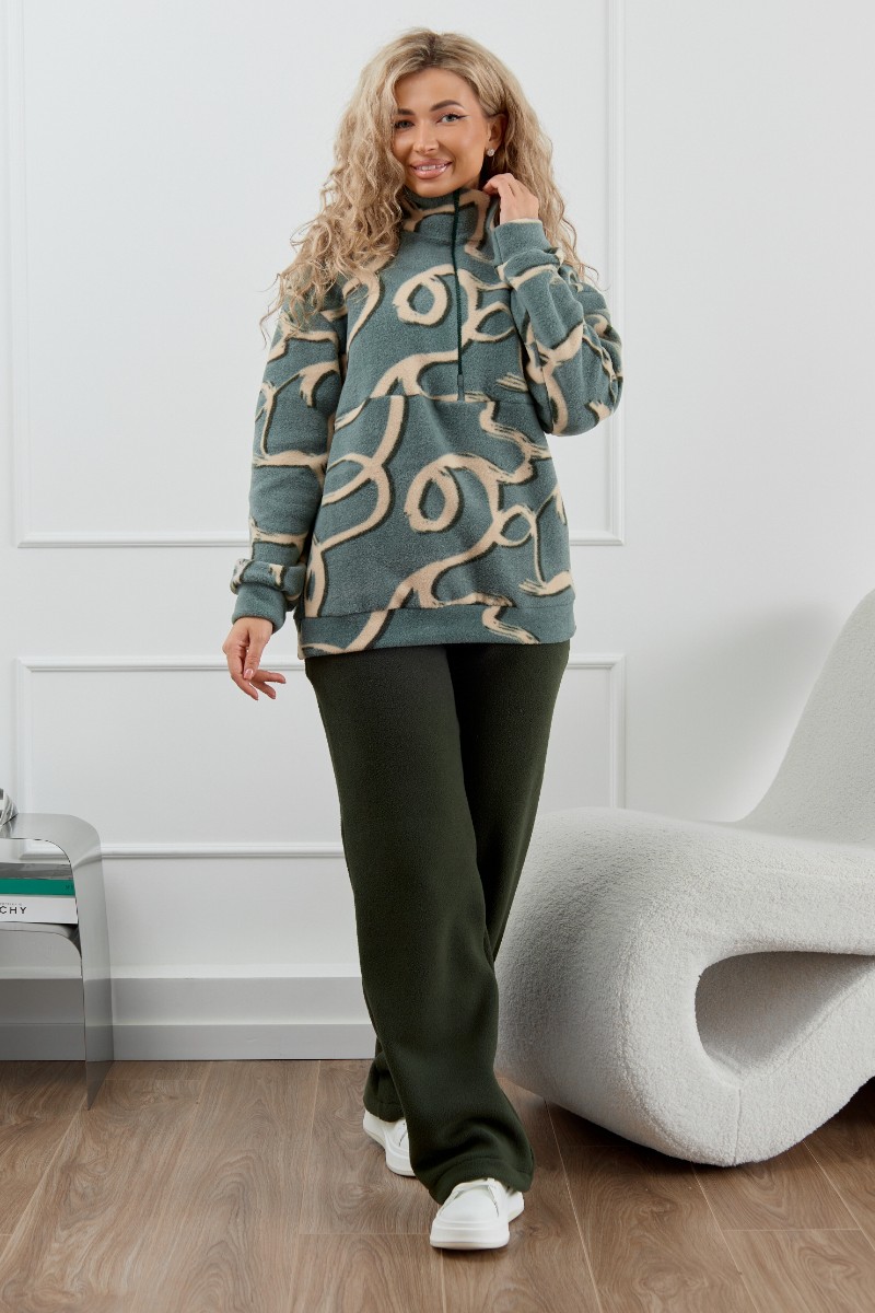 Представляем Вашему вниманию женский флисовый костюм – стиль и тепло в одном комплекте. Мягкий и плотный флис надежно сохраняет тепло, делая костюм идеальным для холодной осени и зимы. Этот костюм - универсальное решение для различных ситуаций. Он может использоваться как пижама для сна и отдыха, как домашний костюм, а также как повседневная одежда для прогулок и спорта. Женский домашний костюм состоит из толстовки с воротником-стойкой на молнии и прямых брюк с карманами. Костюм сидит свободно и не сковывает движения, что делает его идеальным вариантом для активного образа жизни.