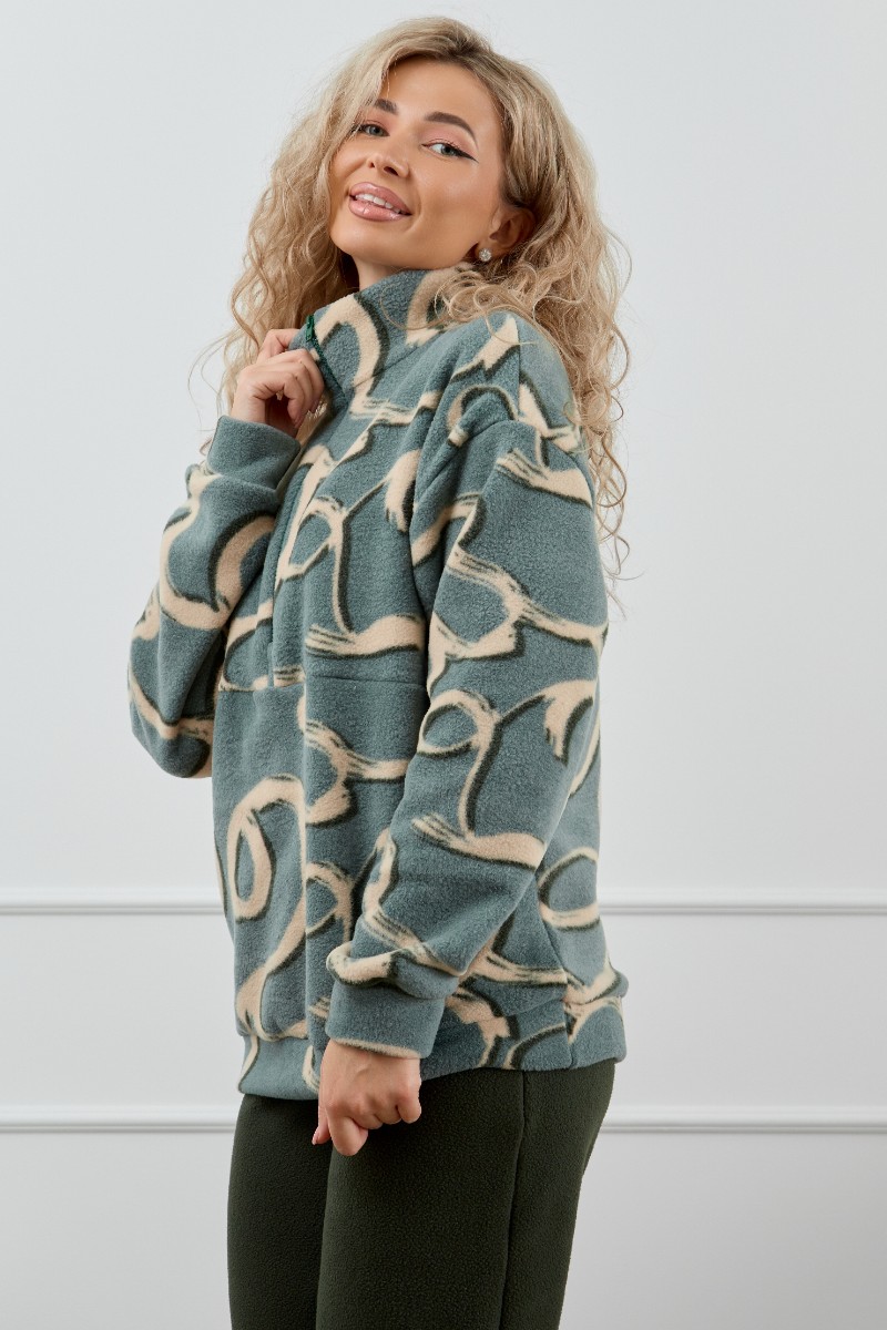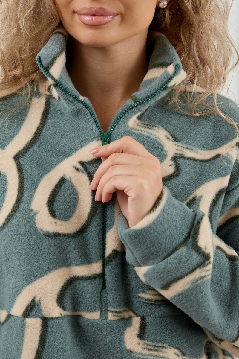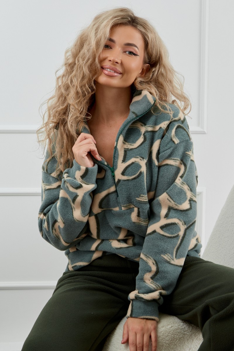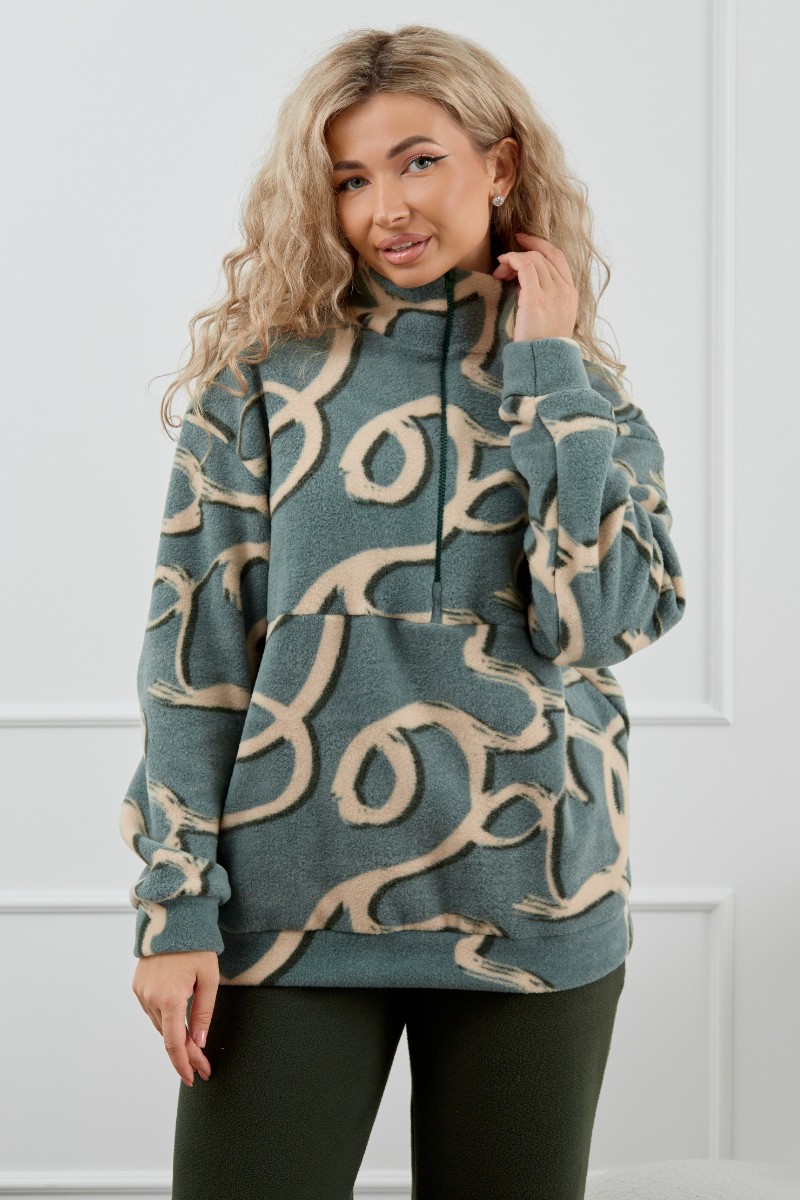 Костюм двойка женский М-1014 "Узоры Петроль" флис (р-ры: 44-58)