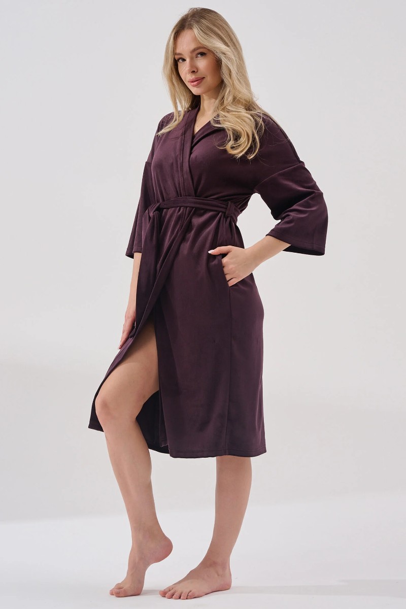 Представляем Вашему вниманию мягкий и уютный женский халат на запах, сшитый из приятного телу велюра. В нём Ваш домашний отдых будет максимально приятным и расслабляющим.
