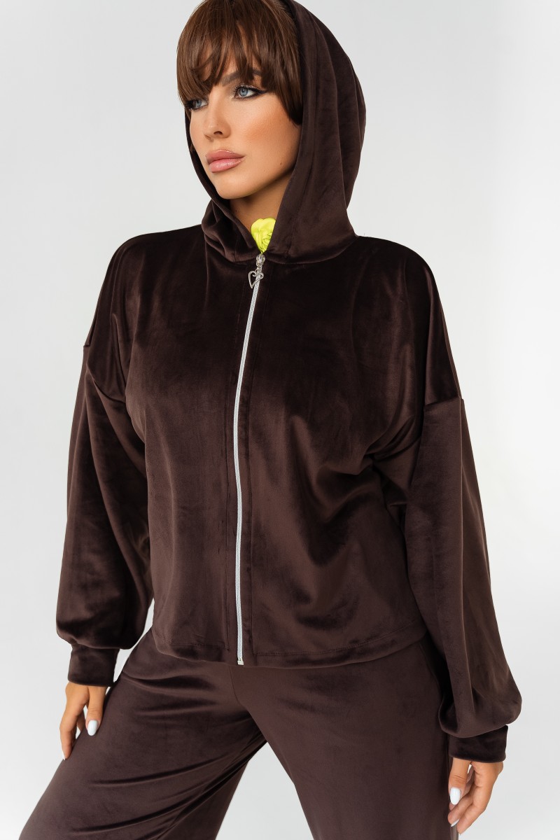 Костюм двойка женский КС-077ФР/ШОК велюр (р-ры: 44-56) шоколад