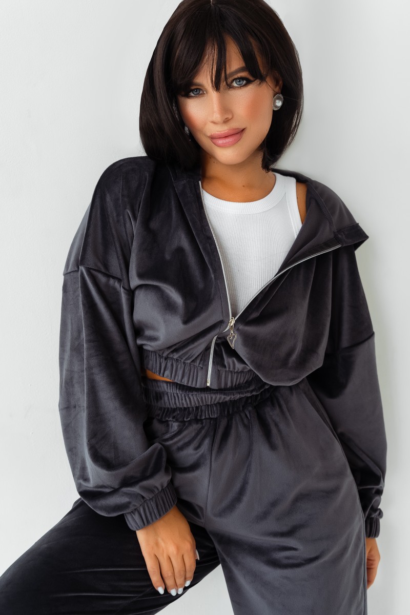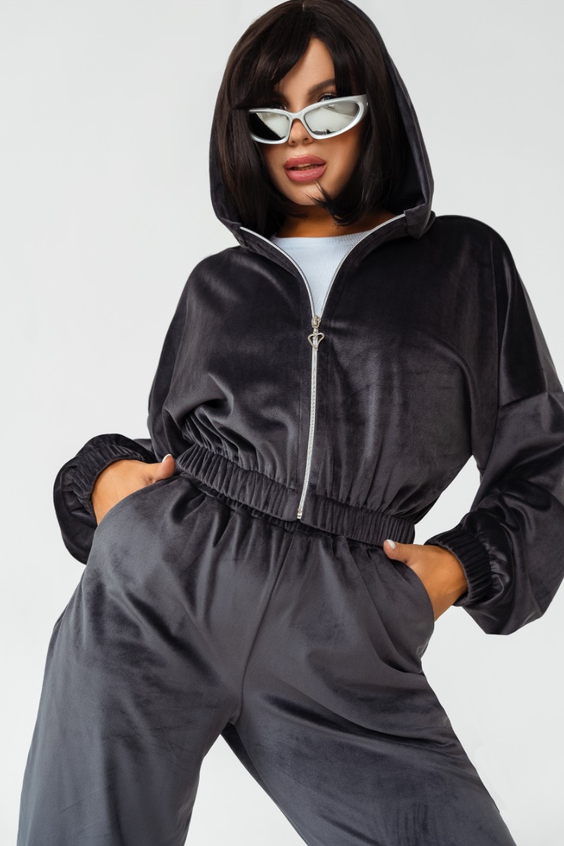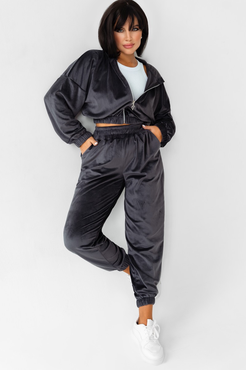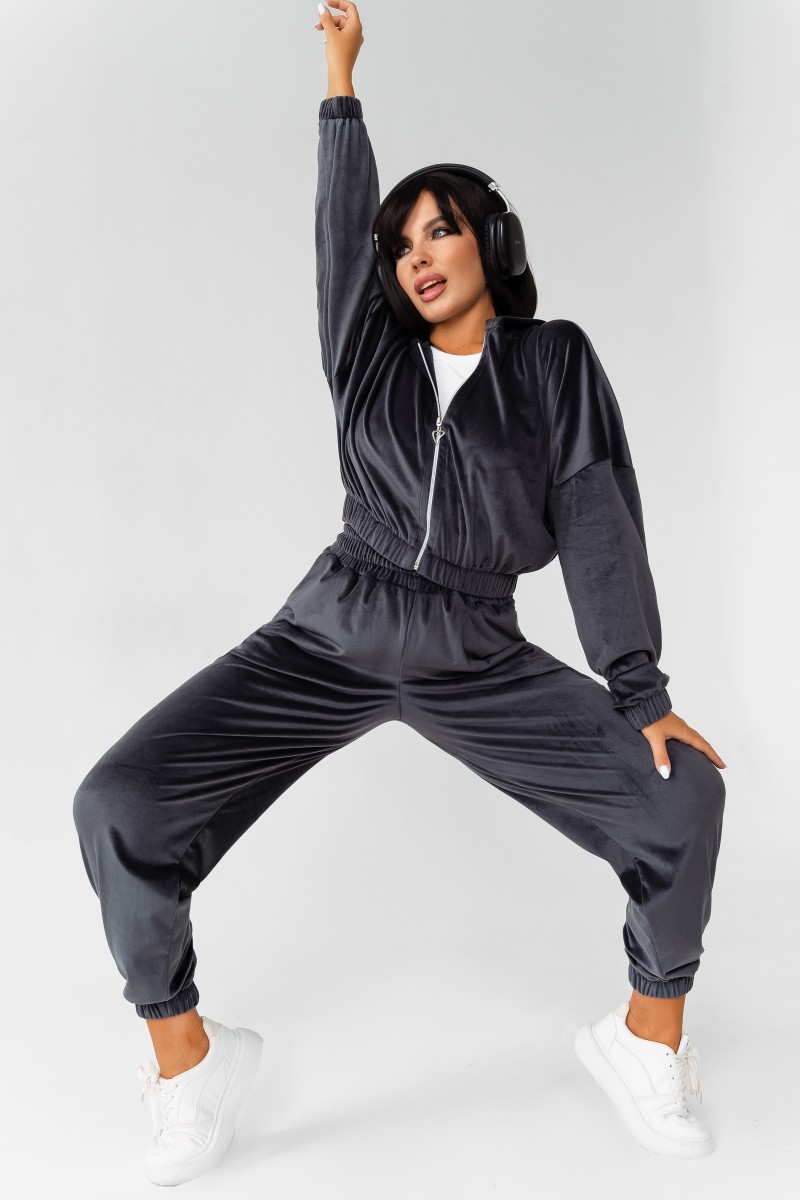 Костюм двойка женский КС-078ФР/ГРФ велюр (р-ры: 42-52) графит
