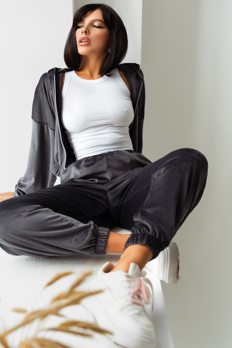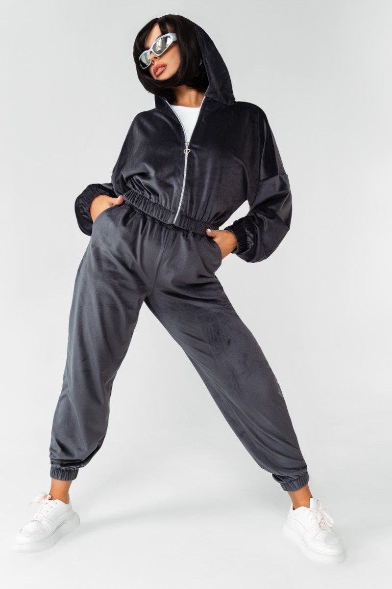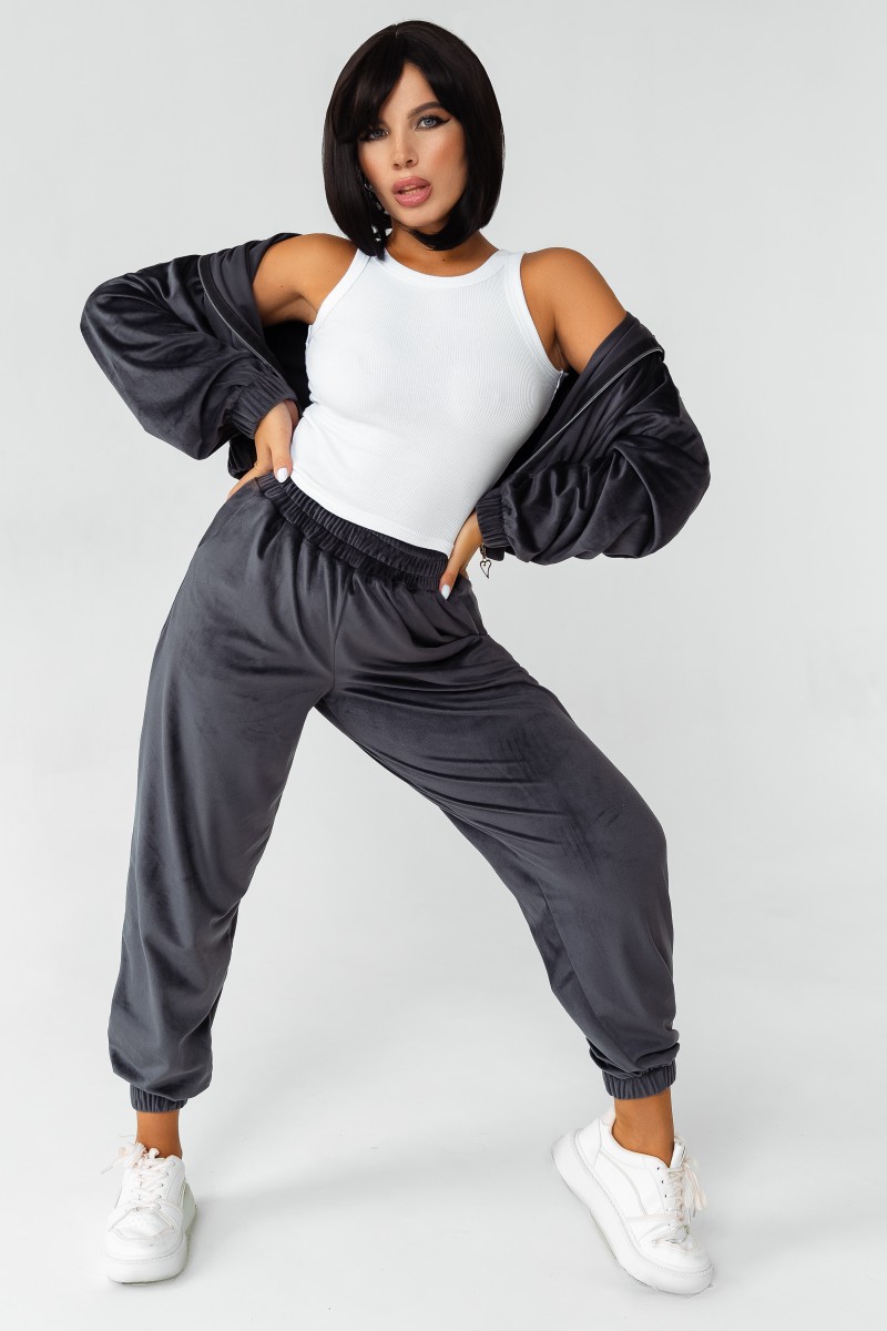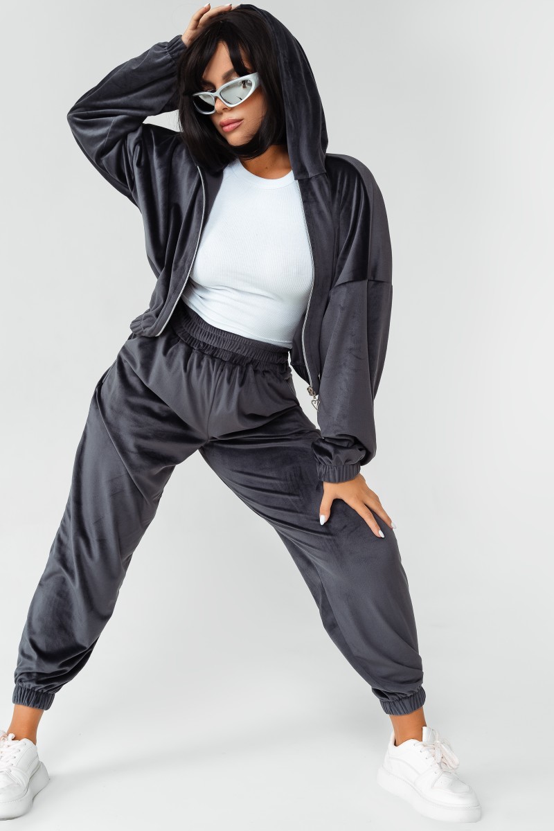 Костюм двойка женский КС-078ФР/ГРФ велюр (р-ры: 42-52) графит