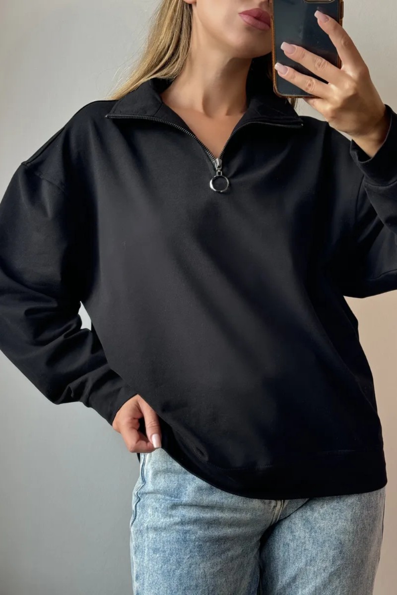 Свитшот женский №14427 футер 3-х нитка с начесом (р-ры: 42-54) черный