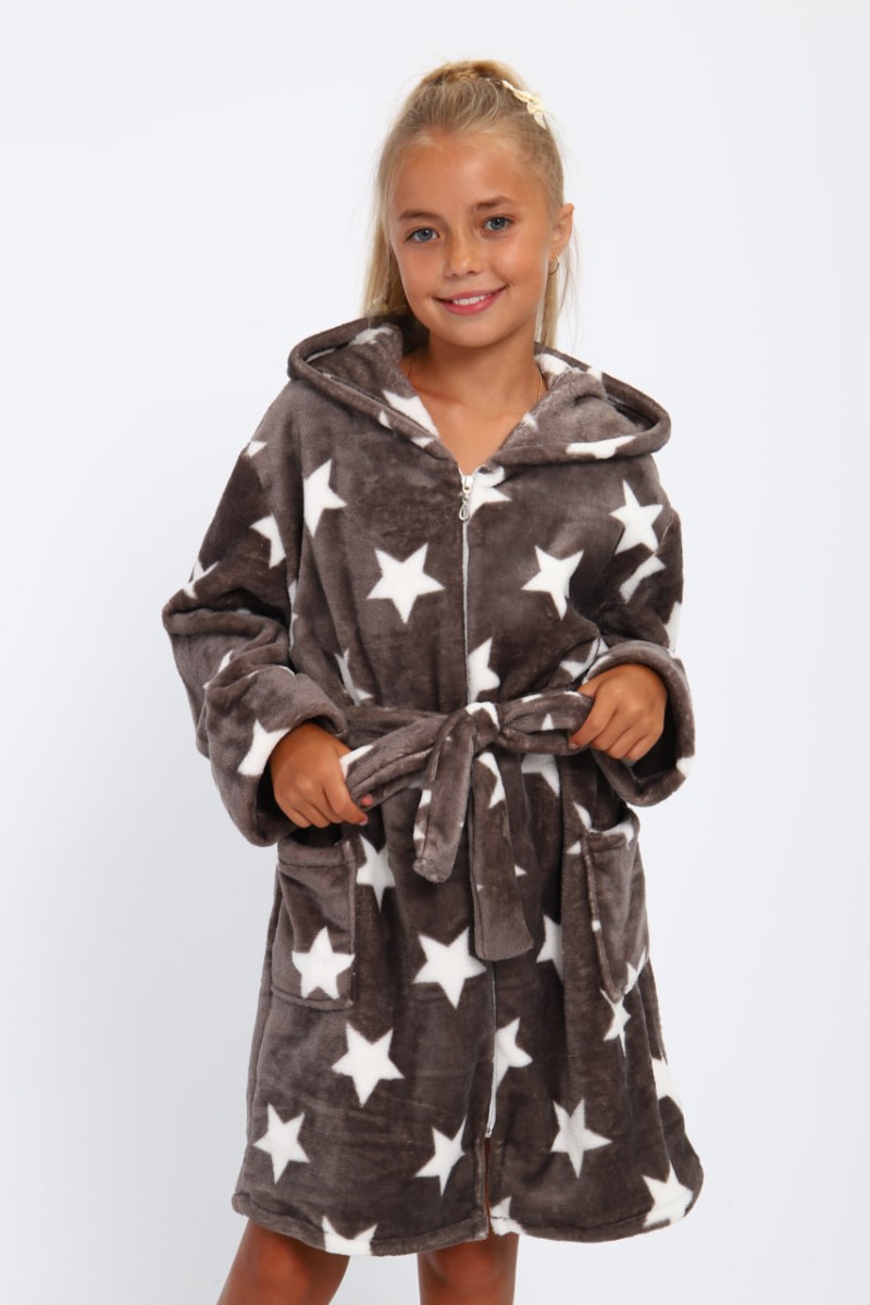 Халат детский №18112 экстрасофт (р-ры: 28-40) звездочка на сером