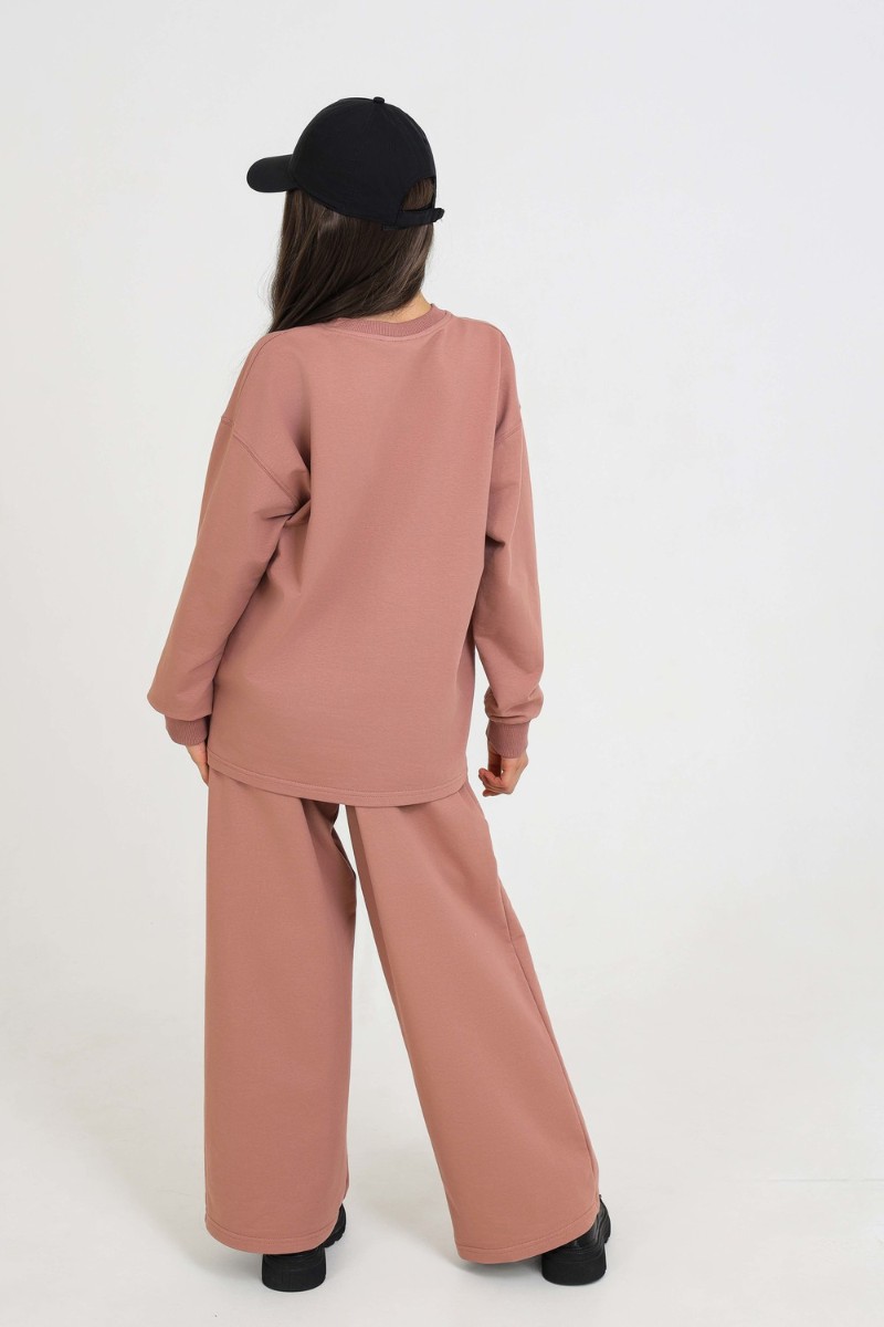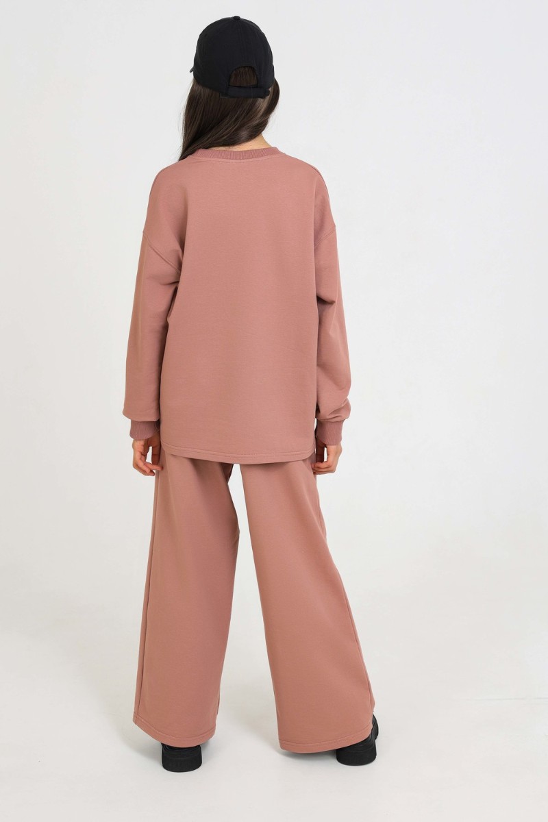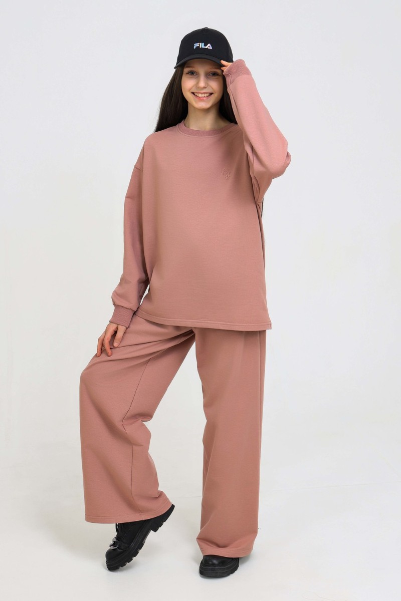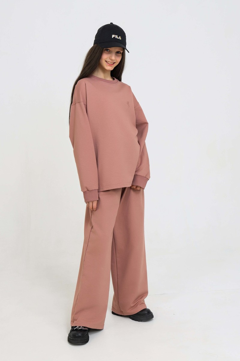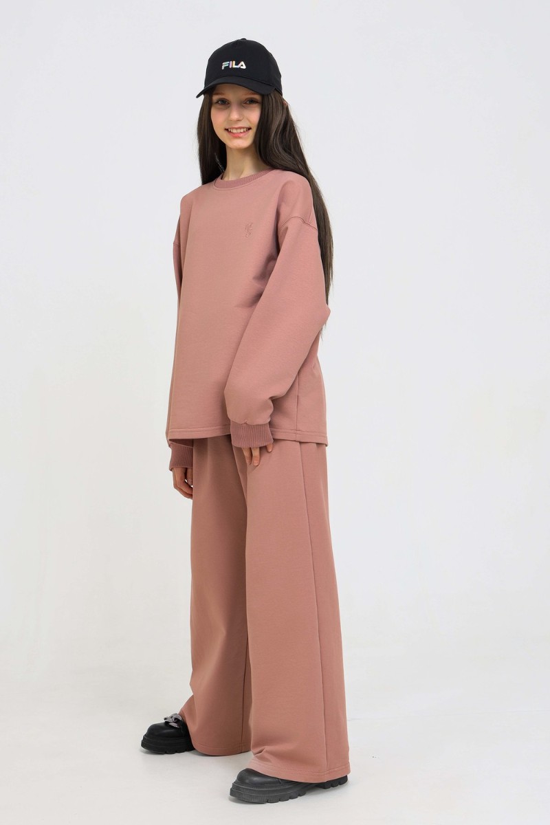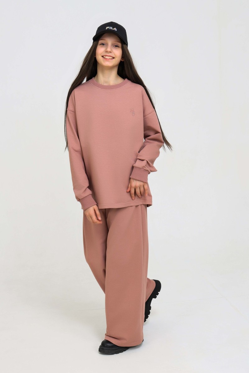 Представляем Вашему вниманию спортивный костюм из футера - маст хэв в детском гардеробе. Состоит их брюк-клёш и свитшота. Свитшот свободного кроя. Манжеты и горловина обработаны мягким кашкорсе. Брюки палаццо с карманами по бокам с поясом на мягкой резинке.