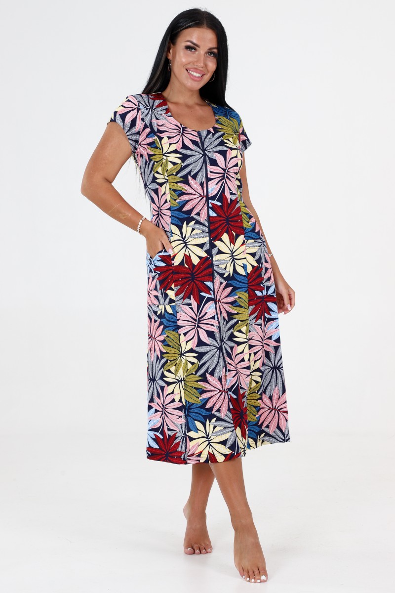 Халат женский ХК-548 кулирка (р-ры: 48-60) разноцв.папоротник