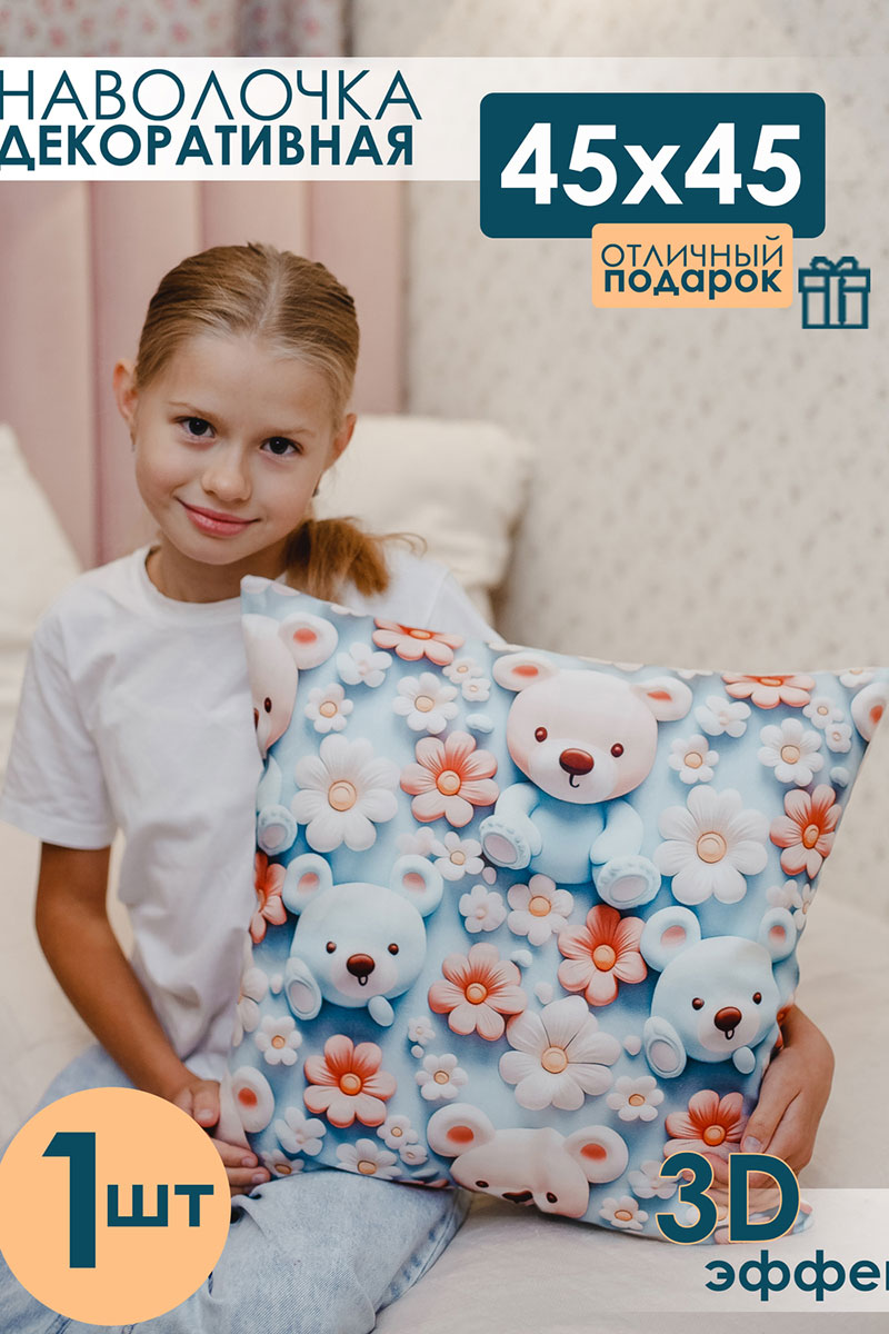 Наволочка-чехол декоративная с 3D-эффектом на молнии мишки