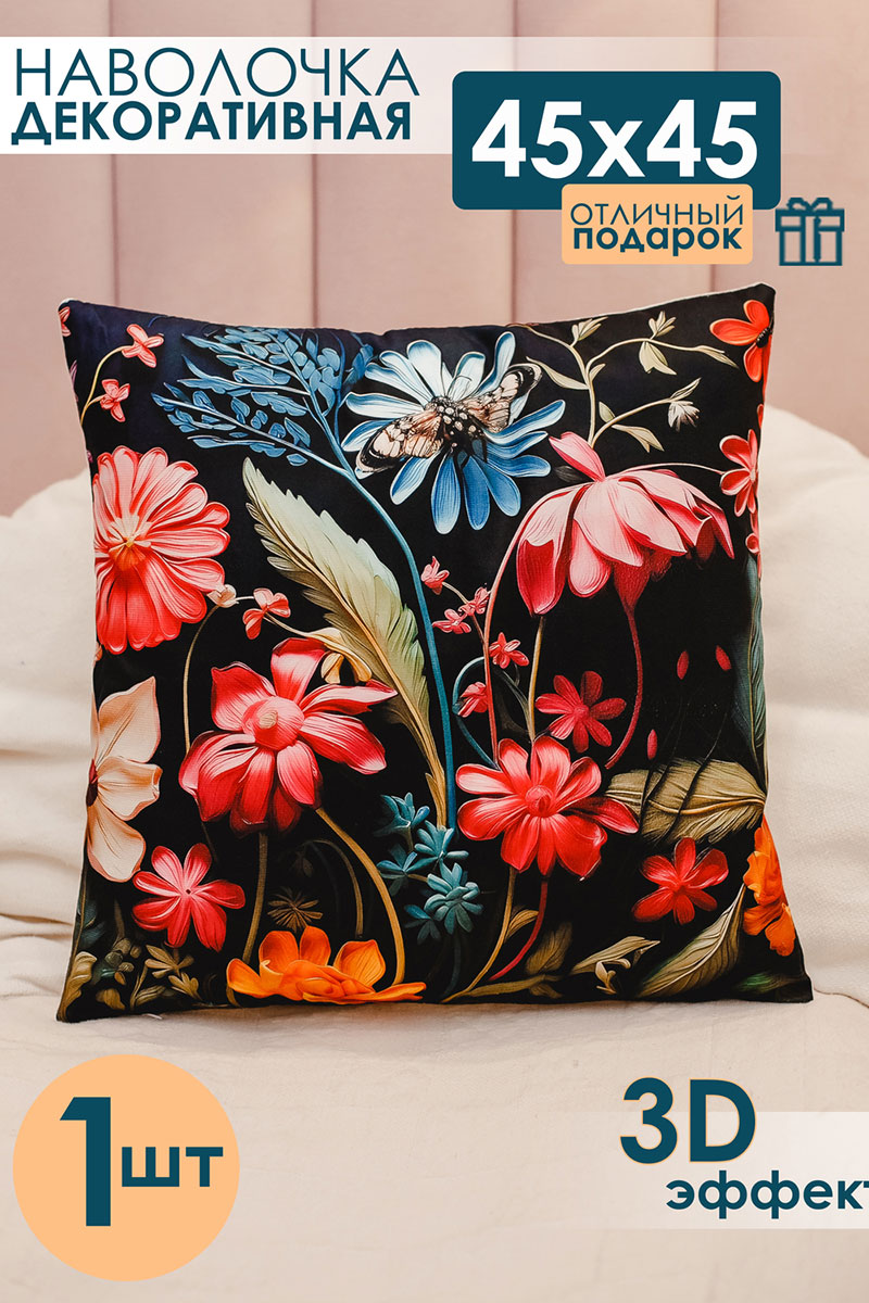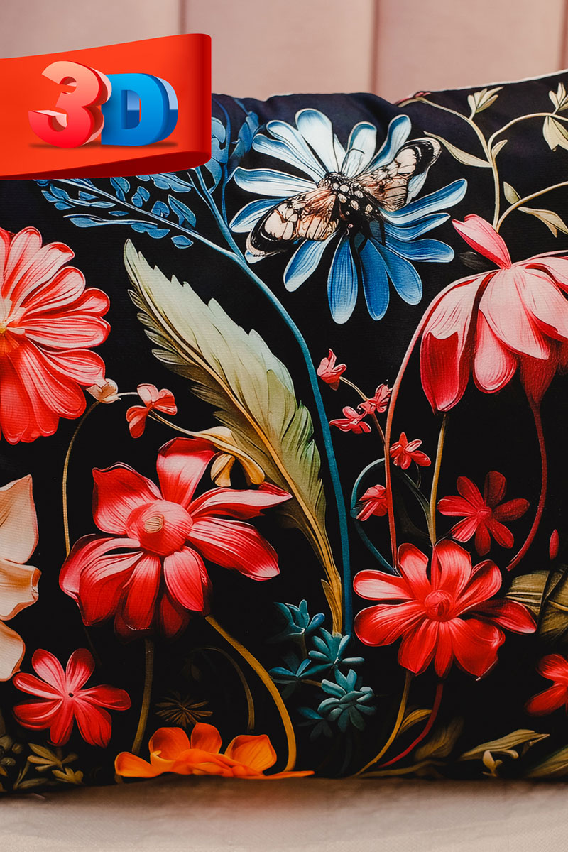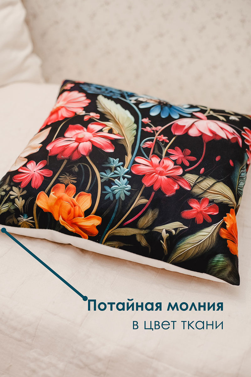 Наволочка-чехол декоративная с 3D-эффектом на молнии черный букет