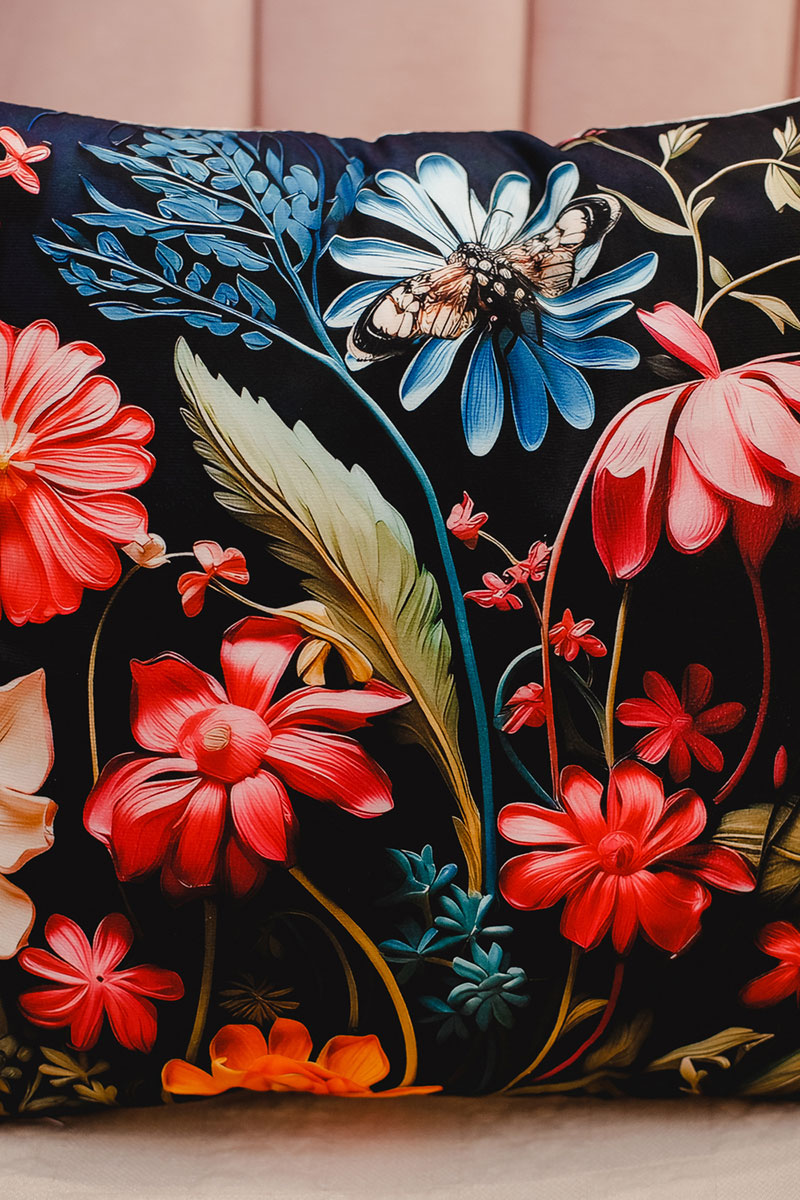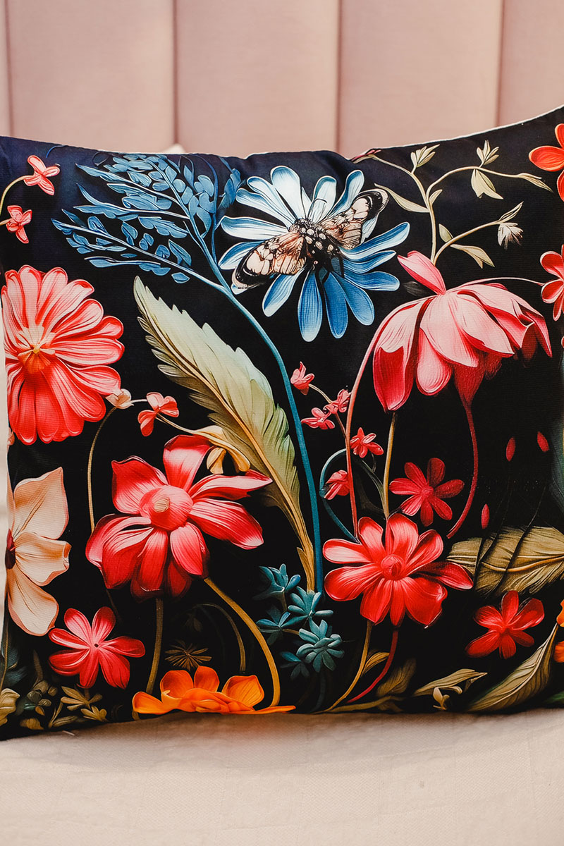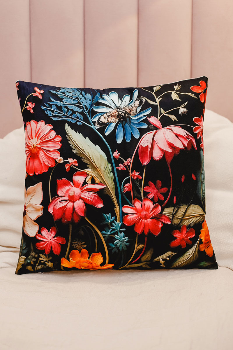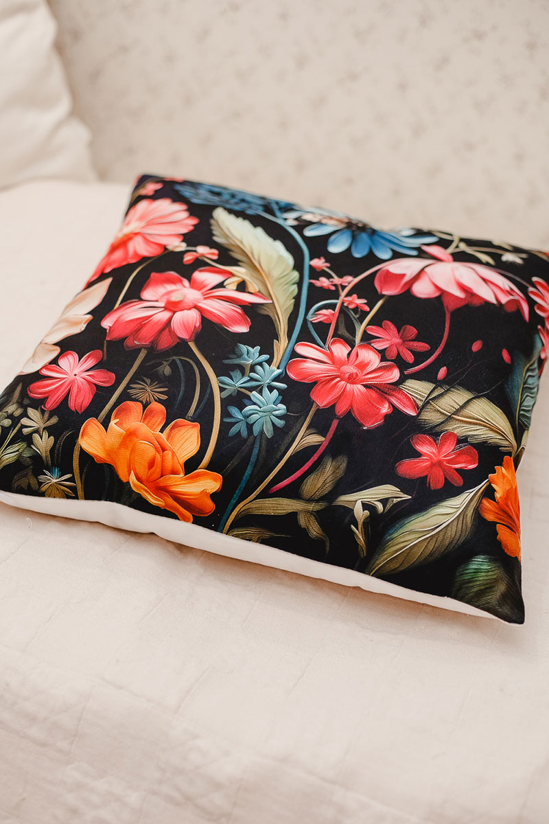 Наволочка-чехол декоративная с 3D-эффектом на молнии черный букет
