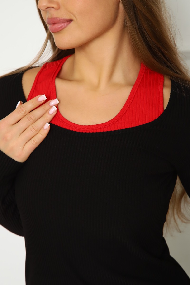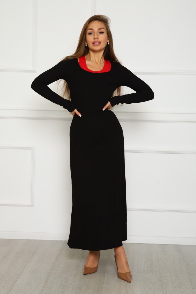 Платье женское №053041 m3 лапша (р-ры: 42-48) черный-красный
