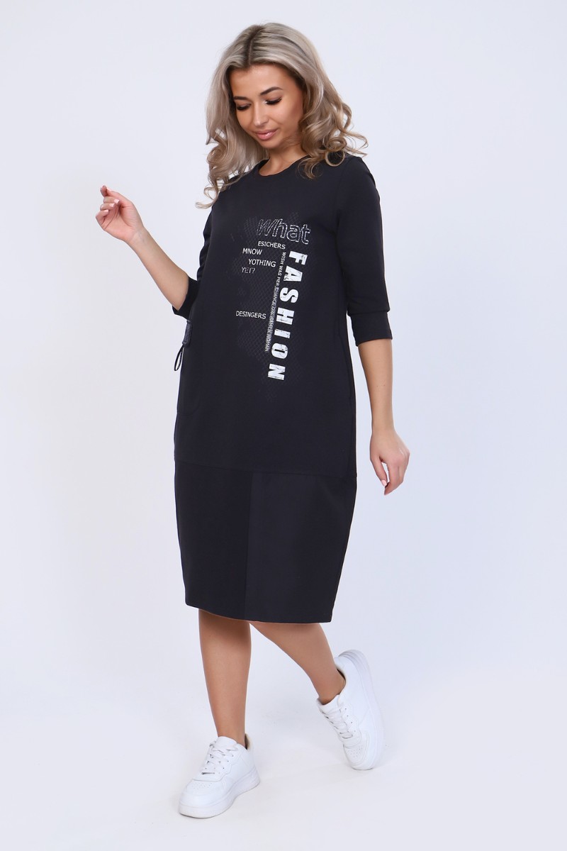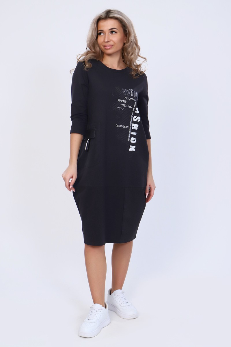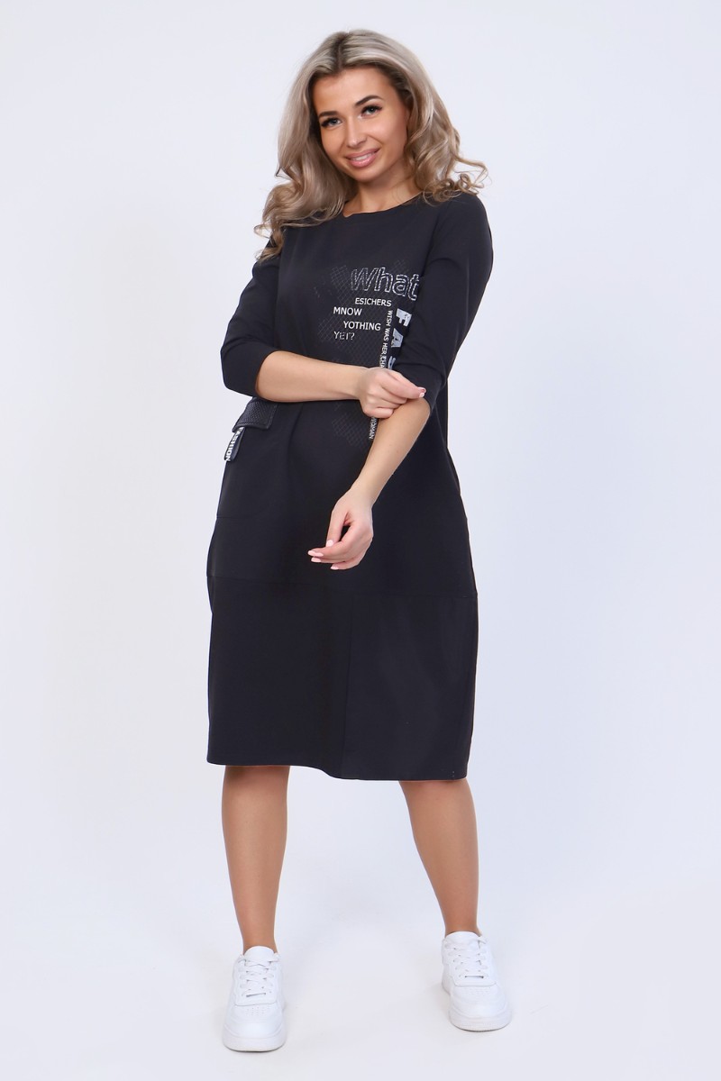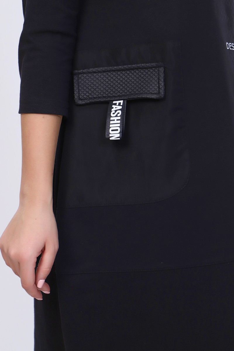 Представляем Вашему вниманию модное женское платье в стиле оверсайз, которое подойдет на любой тип фигуры. Главная изюминка платья - декоративный карман из кожи и большой, красивый принт спереди. Рукав 3/4, длина ниже колена, карман в боковом шве - прекрасный вариант для тех, кто любит уютную и удобную одежду.