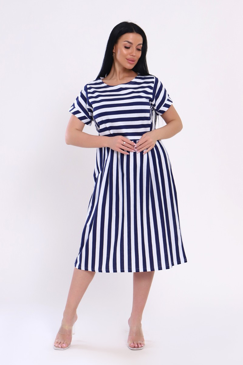 Платье женское №82054 кулирка (р-ры: 44-54) полоса синяя