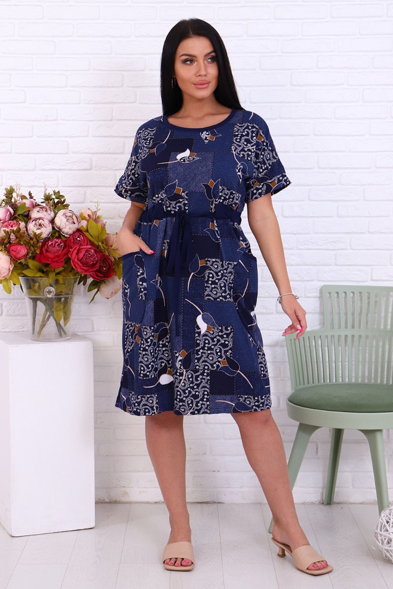 Платье женское №6283 кулирка (р-ры: 48-58) темно-синий