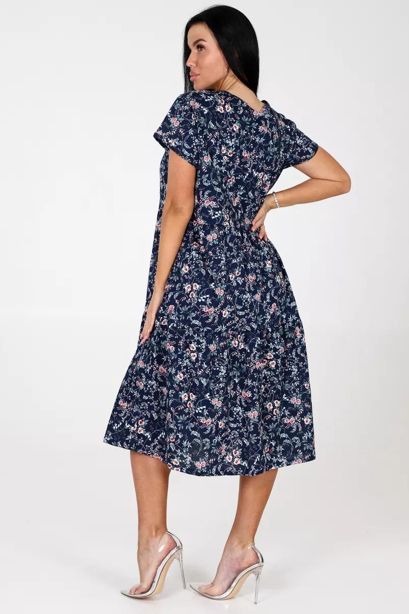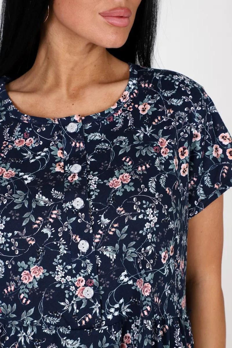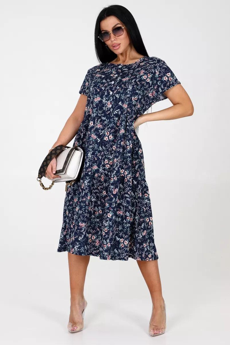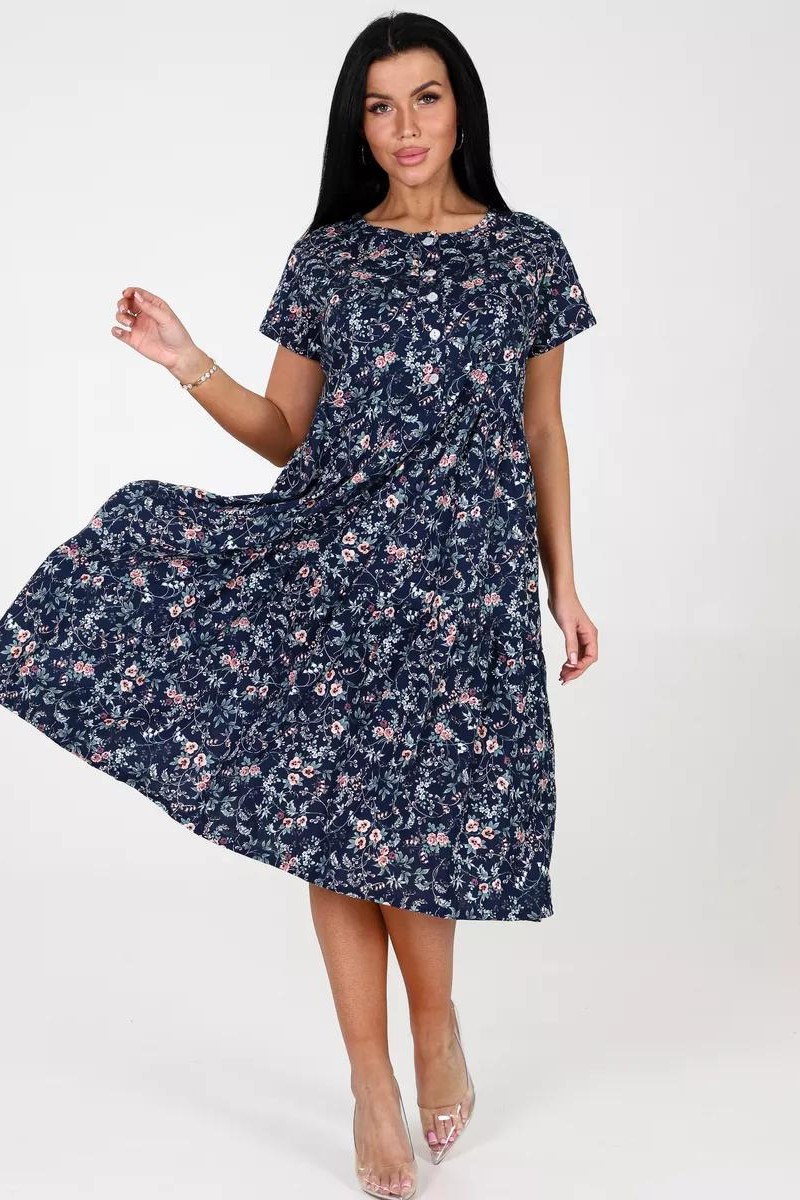Платье женское №01 "Цветы" кулирка (р-ры: 48-66) синий