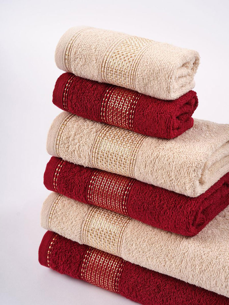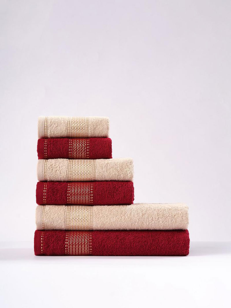 Набор махровых полотенец "Goldy" бежевый-бордо 6 шт.