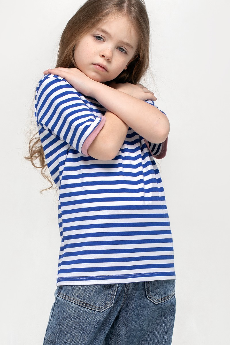Футболка детская "Бриз" кулирка (р-ры: 92-128) синий-розовый