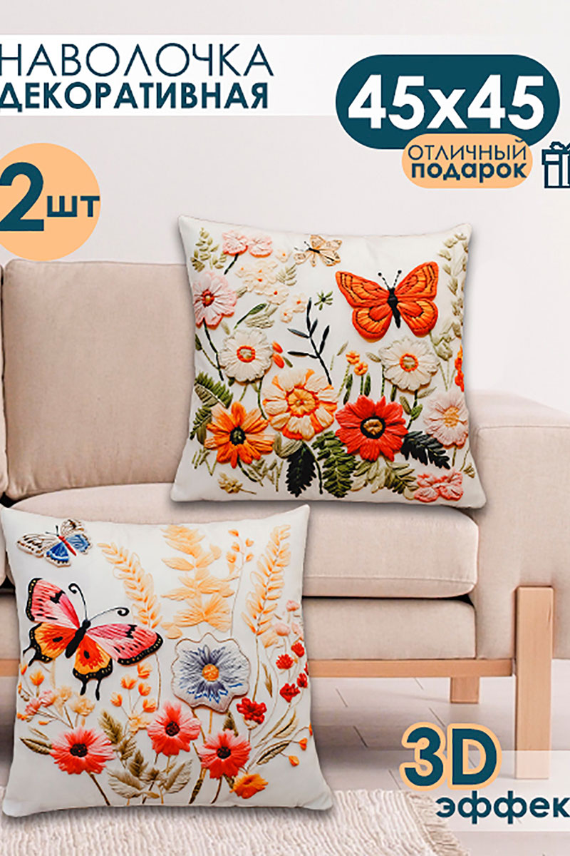 Наволочка-чехол декоративная с 3D-эффектом на молнии бежевый 2 шт.