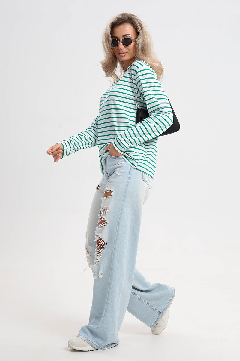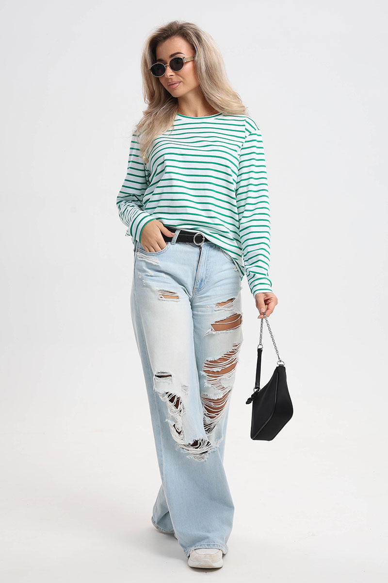 Лонгслив женский Л-2/1 кулирка с лайкрой (последний размер) белый-зеленый 44