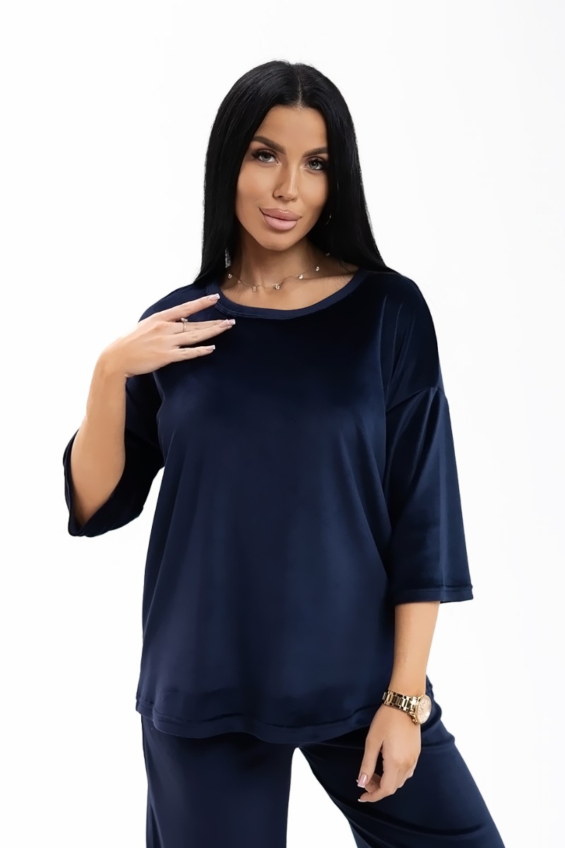 Костюм двойка женский 1920/2 велюр (последний размер) синий 56,58