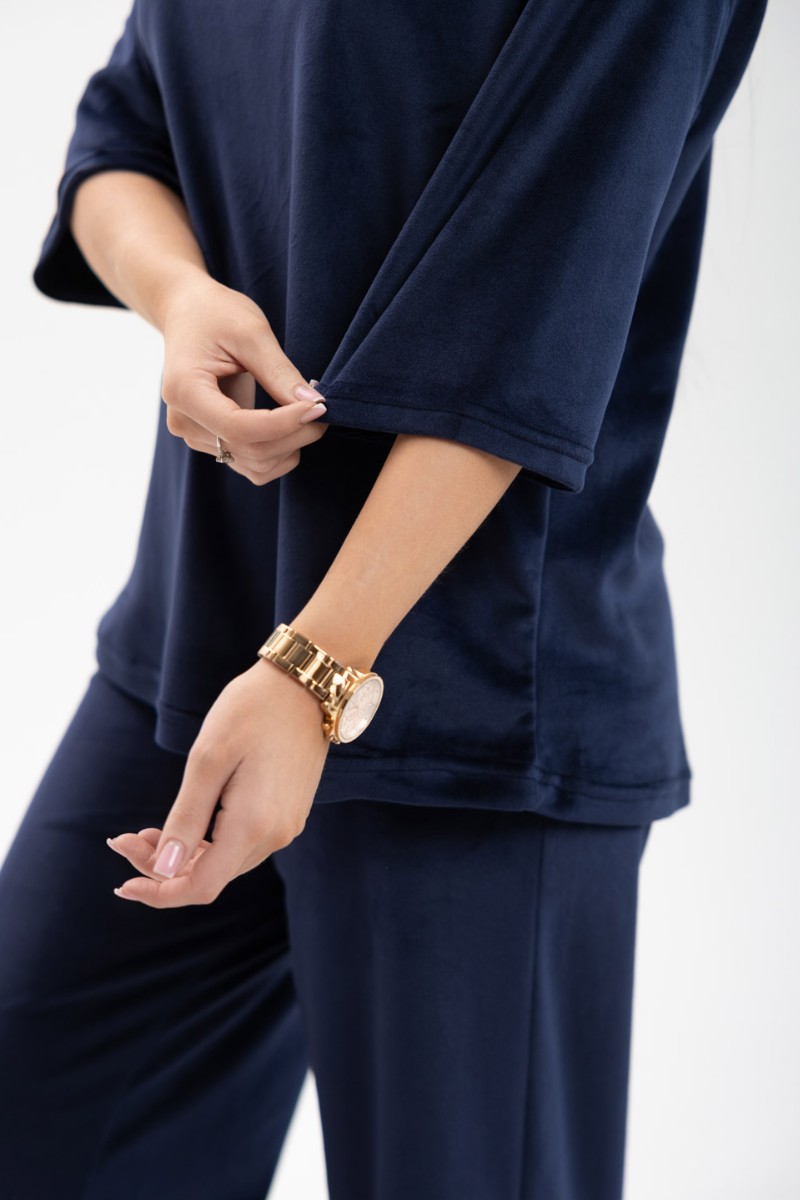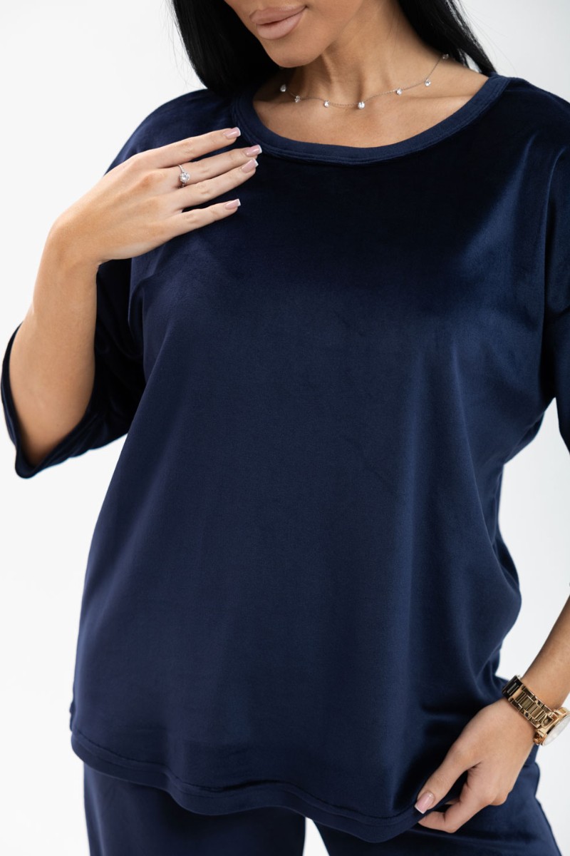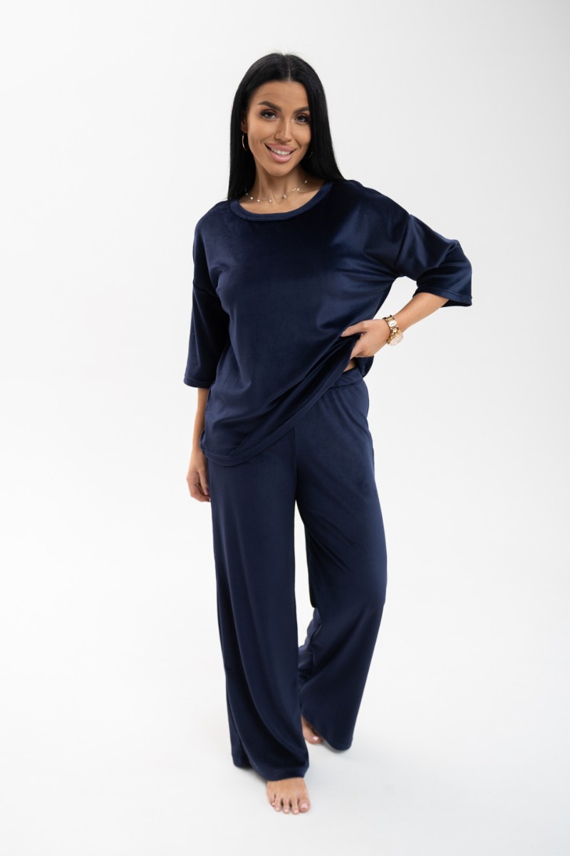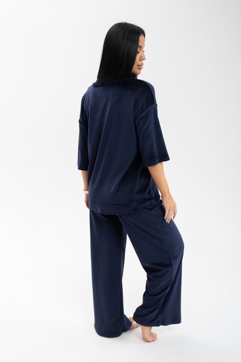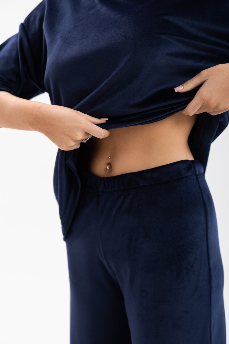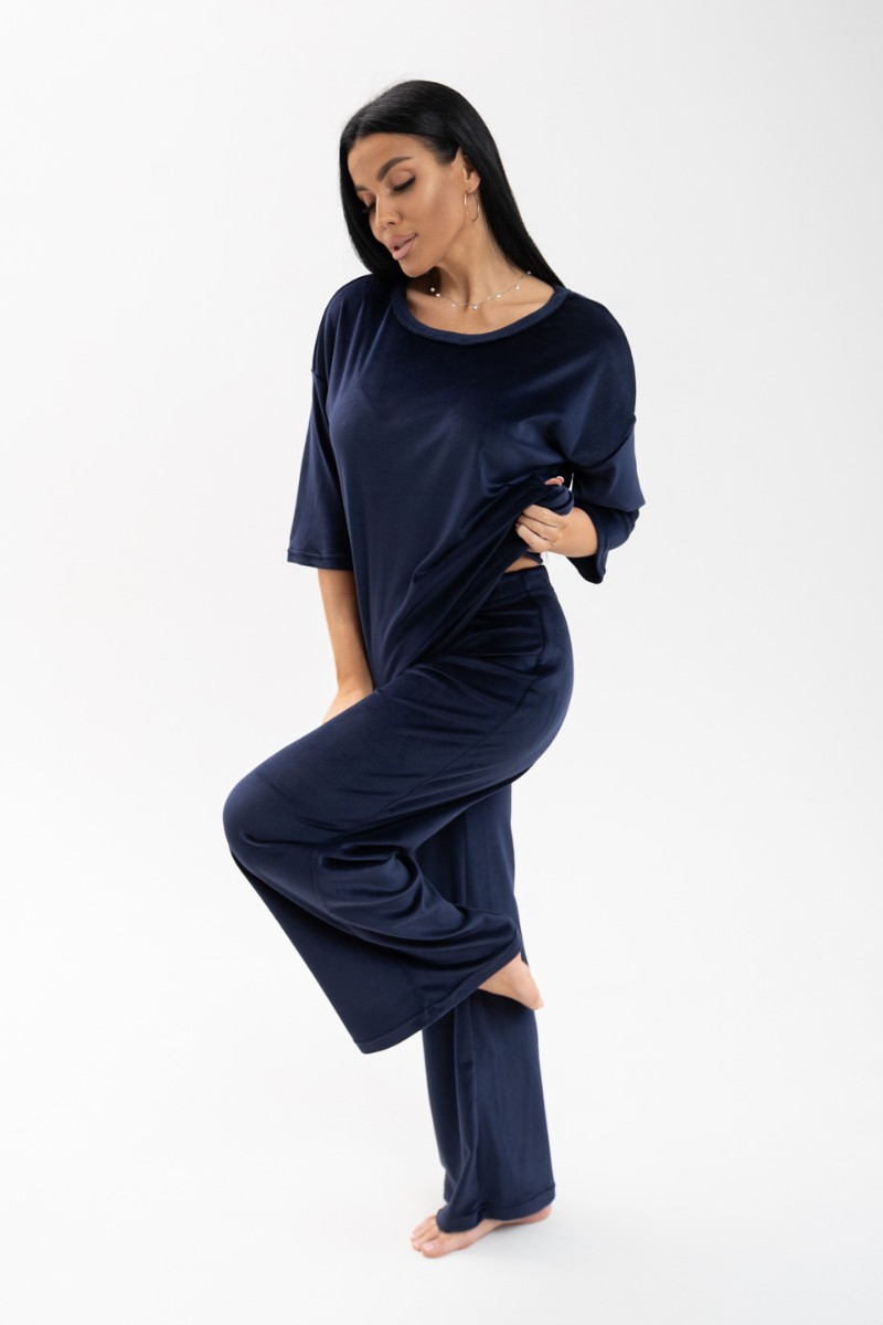 Представляем Вашему вниманию женский велюровый домашний костюм в синем цвете станет вашим незаменимым атрибутом для уютных вечеров дома. Мягкий и приятный к телу материал обеспечит вам максимальный комфорт, а стильный дизайн подчеркнет ваш неповторимый стиль. Незаменимый выбор для тех, кто ценит качество и уют!